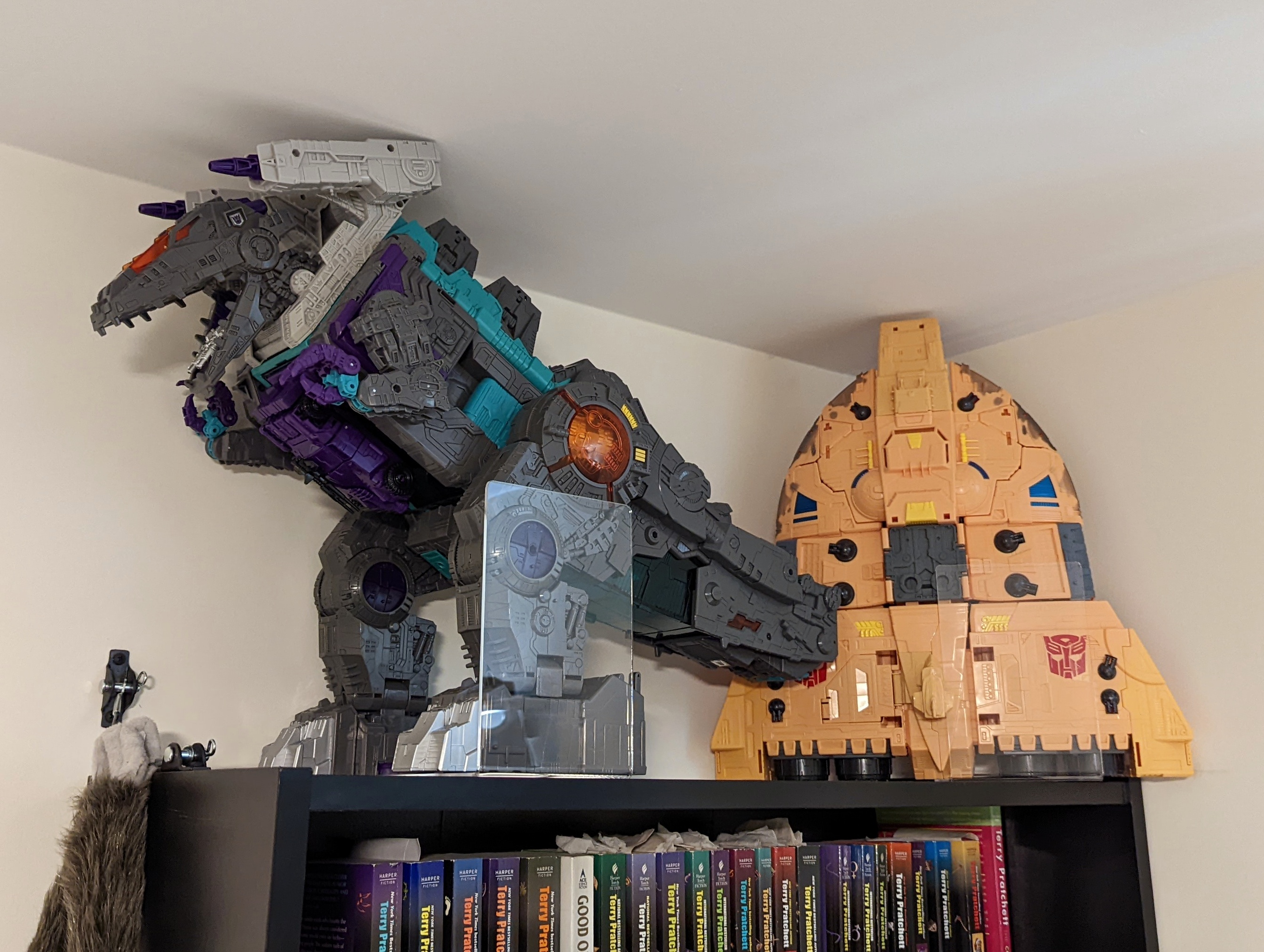 Thanks! I tried that, but they feel more stable up there in this orientation.... Unless Trypticon is basically staring at the corner [Megatron has him in time-out]. :D