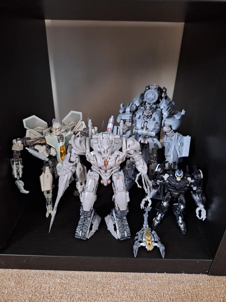 The idea I have for this shelf is for Megatron to go in the middle and Soundwave to go where Dirge is currently standing. This is assuming the leaked Legacy Soundwave is a G1 version of course. And seeing as it seems to be the general consensus that the leaked Studio Series "MV6" Megatron is that Bumblebee movie design, I may just keep that space open until we get another G1 Megatron. I'm holding on to Dirge just in case we ever get re-releases of Thrust and Ramjet, but if that doesn't happen I may just sell him.