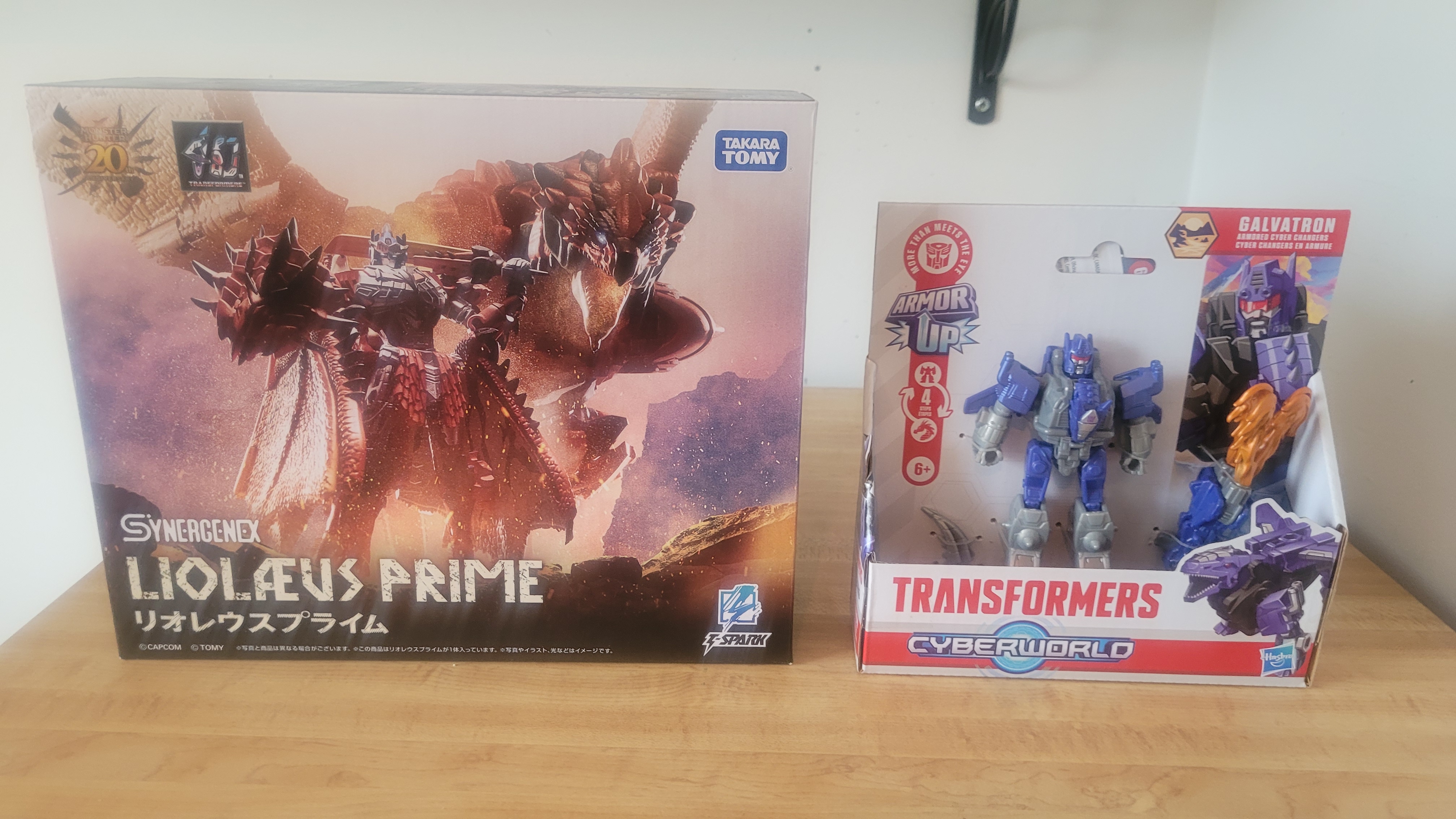 Got the X-Over MH Optimus and Cyberworld Scourge Galvatron. Optimus came in a huge box for reasons.