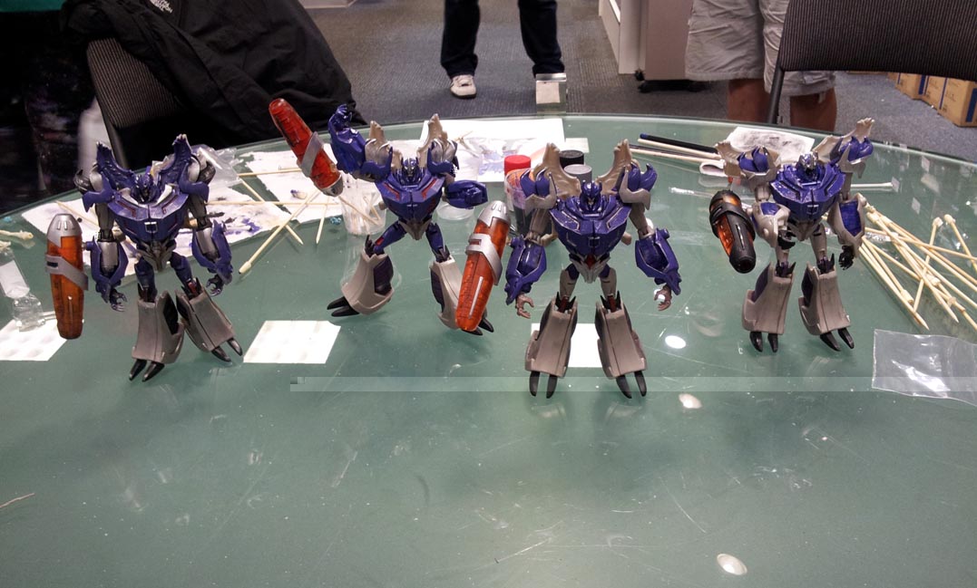 Below are some photos of the testshot (black and clear), and completed customs from the classes we did, to give an idea how the figure can look with a paint job.  I'll update within the next day with how the retail version looks in purple and translucent orange, unpainted, and with some minimum paint.