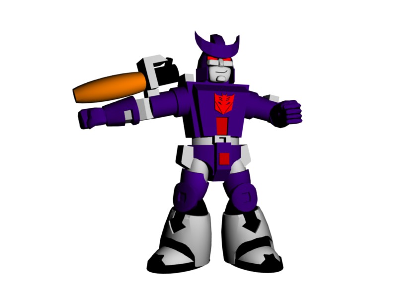I just joined the forum at Seibertron today so this is my first post. Anyway I have made a robot heroes Galvatron in Art of Illusion and Blender. Took about 5 nights of work around 9 hours total since I am also new at fan art. Would have added more detail but my computer is very old Pentium 2 300MHz so after so many faces it slows down a lot.