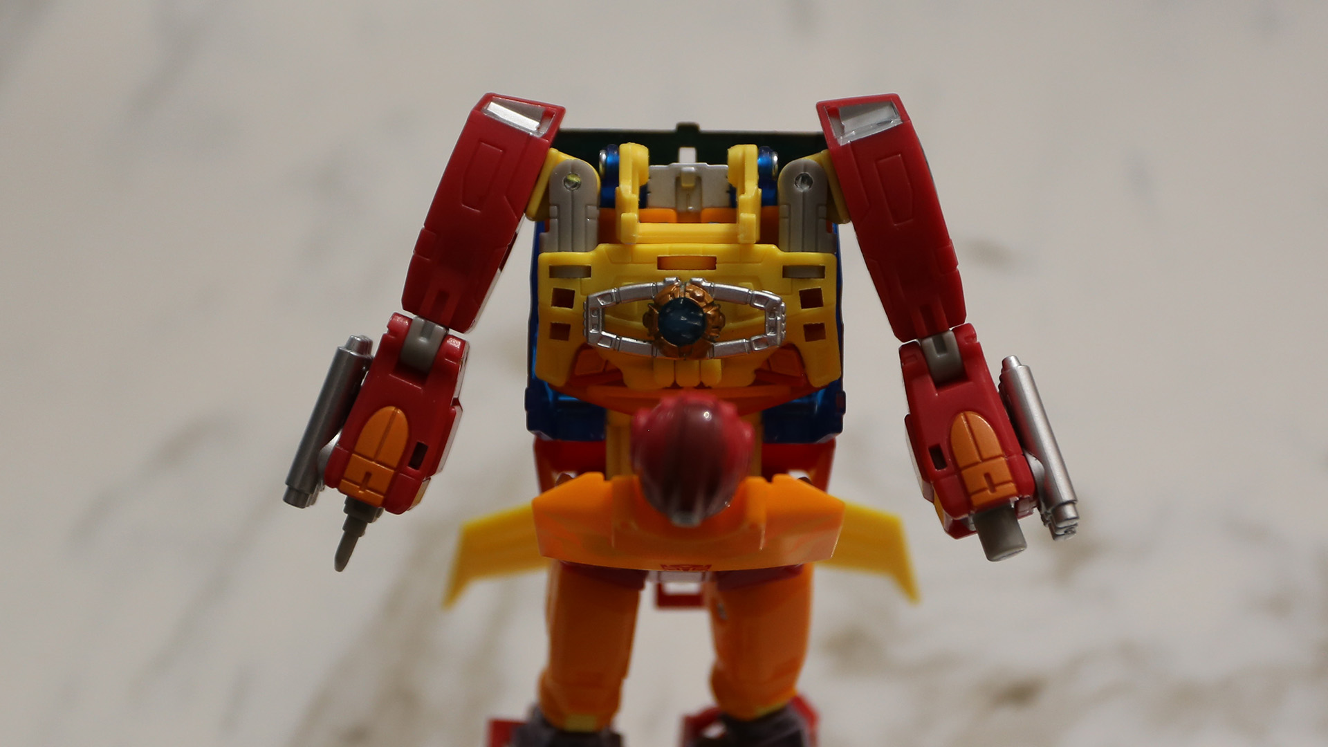 With these mods, I can have all his accessories attached to him except the matrix effect. What to do? Hmm... I simply tucked it behind his head. So Hot Rod can look like the patron Saint of Speed and Youthful Recklessness that he is, for giggles!!!