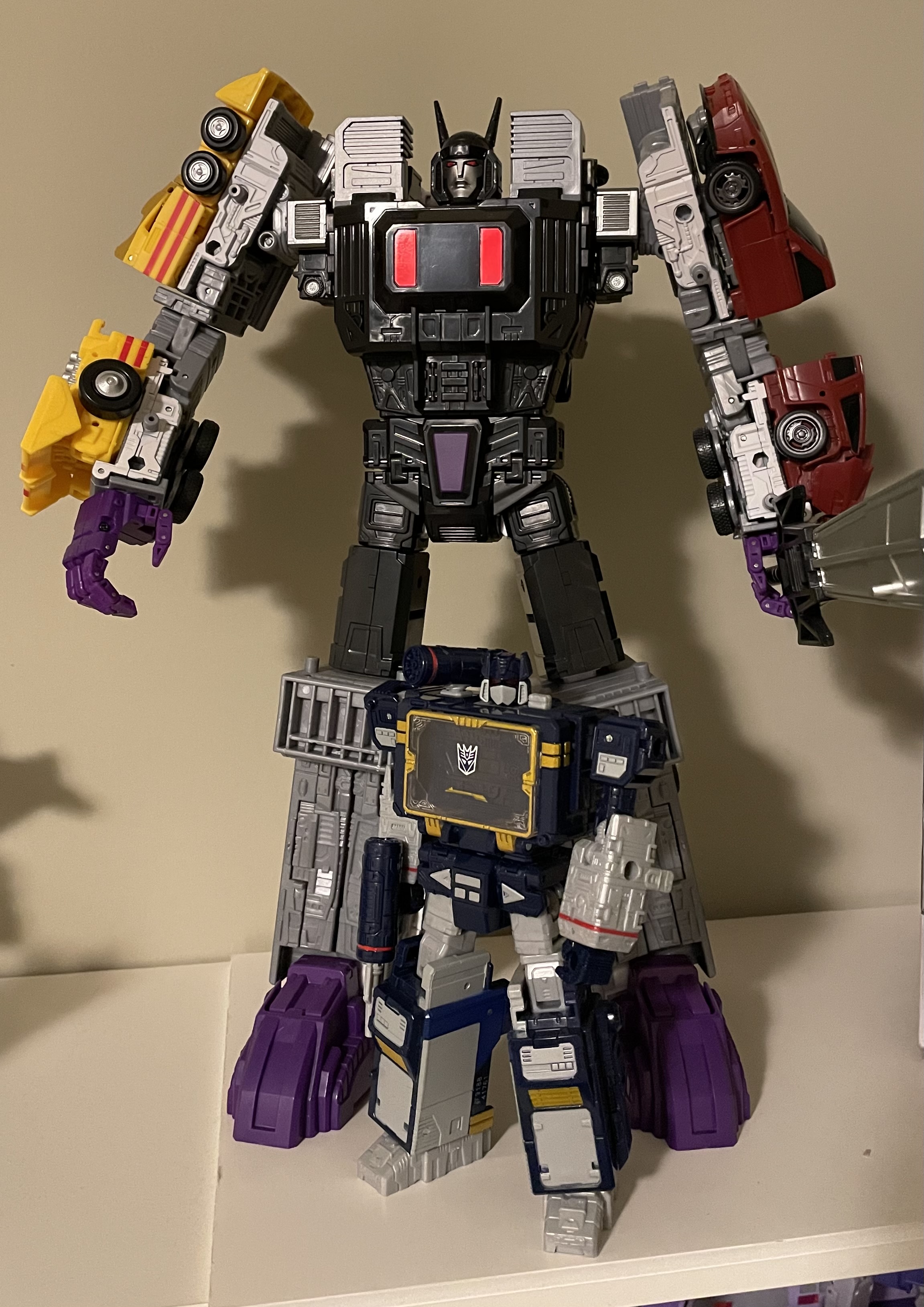 I also agree that this new Devastator is too small for "scale" and CW Devy scales much better. Although I like the individual figures better with the new SS ones. So, I guess I'm saying, if you want the most "accurate" scale, CW Devastator with individual SS Constructicons. I actually like Devastator to be a bit larger than the other combiners, along with Predaking. Thats why I will most likely keep my Predaking even if they make a new one. I mean all combiners grow larger than the sum of their combined members in almost every show/comic. I cannot deny though, the new combiners are waaay better; more stable, look better and better individual figures. I love my Legacy Menasor and Superion is looking amazing. I want a new updated Computron in this new style the most though.