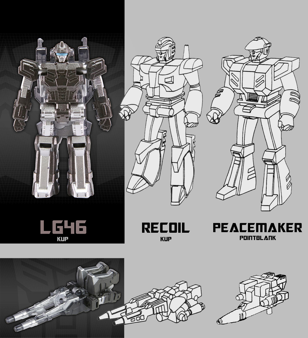 The LG46 Targetmaster is less clear-cut. The body detail is like Peacemaker's but the headsculpt is like Recoil's. I would lean towards him being Recoil because he's colored like Recoil and is double-barreled like Recoil.