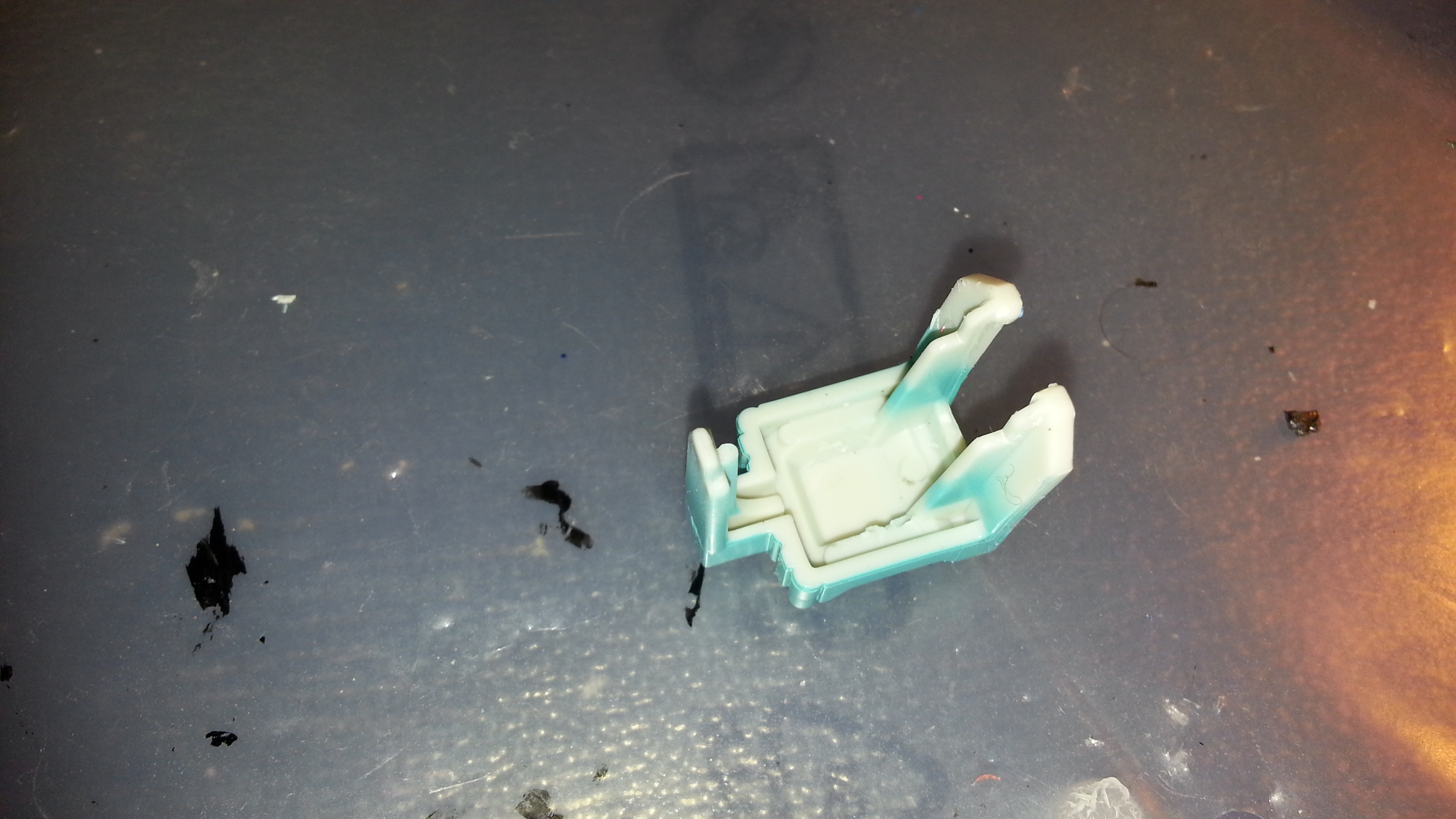 2/ Locate the teal "clips" that "hold" onto the back of the Titanmaster/POTP port (the cavity which holds the heads/engines).