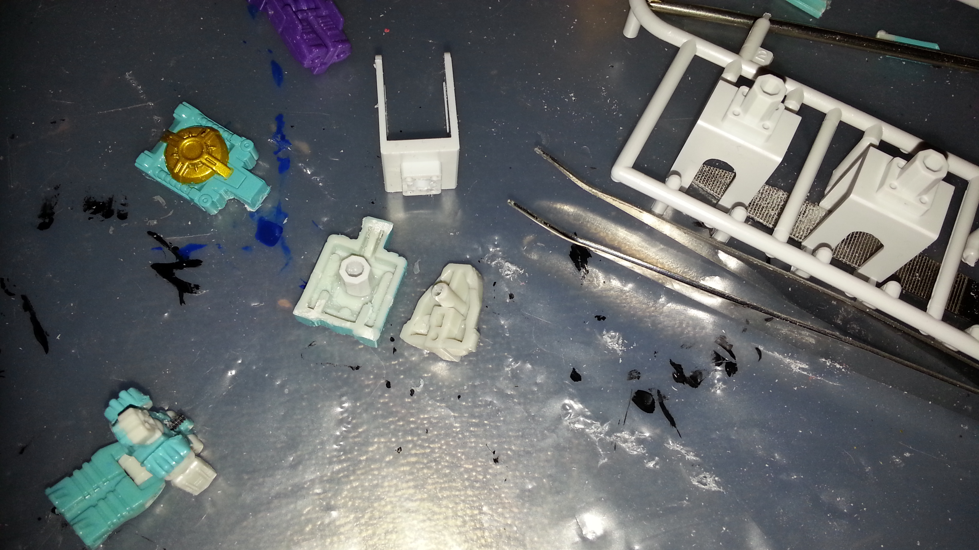 3/ POSSIBLY remove the teal "head" on the engine blocks (as the figures already have heads), although this is an aesthetic choice at this point (but might affect head articulation on the Headmaster figs).