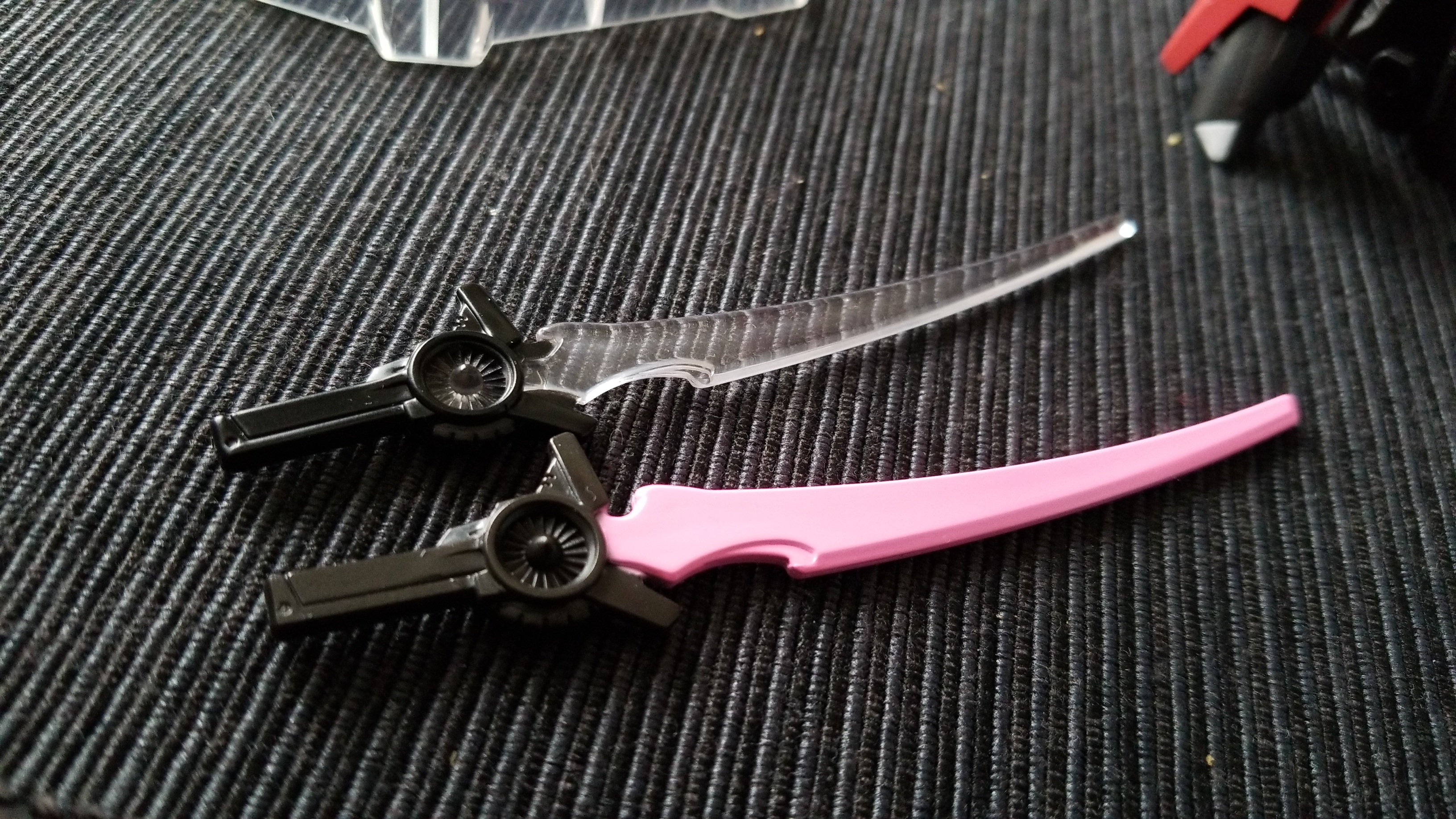 - wider blade, so that the original pink blade cannot go into the new Legends scabbard.