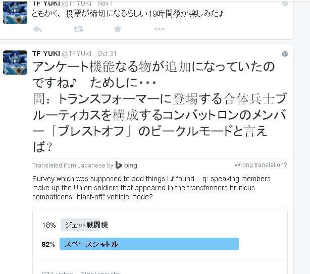 Cyhwuhx wrote:Running the associated tweet through a translator reveals that it's TF YUKI's way of thanking the fans for lots of pre-orders of the Prime-set and for maintaining interest in the UW series.