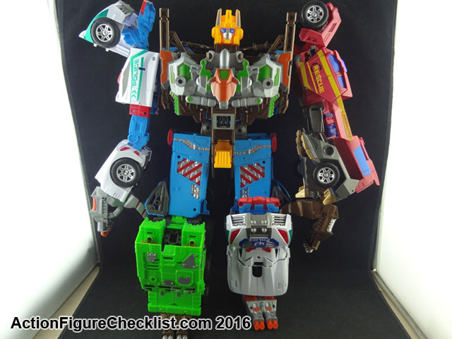 I totally forgot to mention two laughably bad things about the helicopter's transformation: the hands are on swivels which are of course for hiding them inside the arms, but plastic inside said arms block them from going in. And my friend's had this for quite a few years; and in all those years he's never been able to get the head out. Oh, and the arms easily keep falling off the balljoints.
