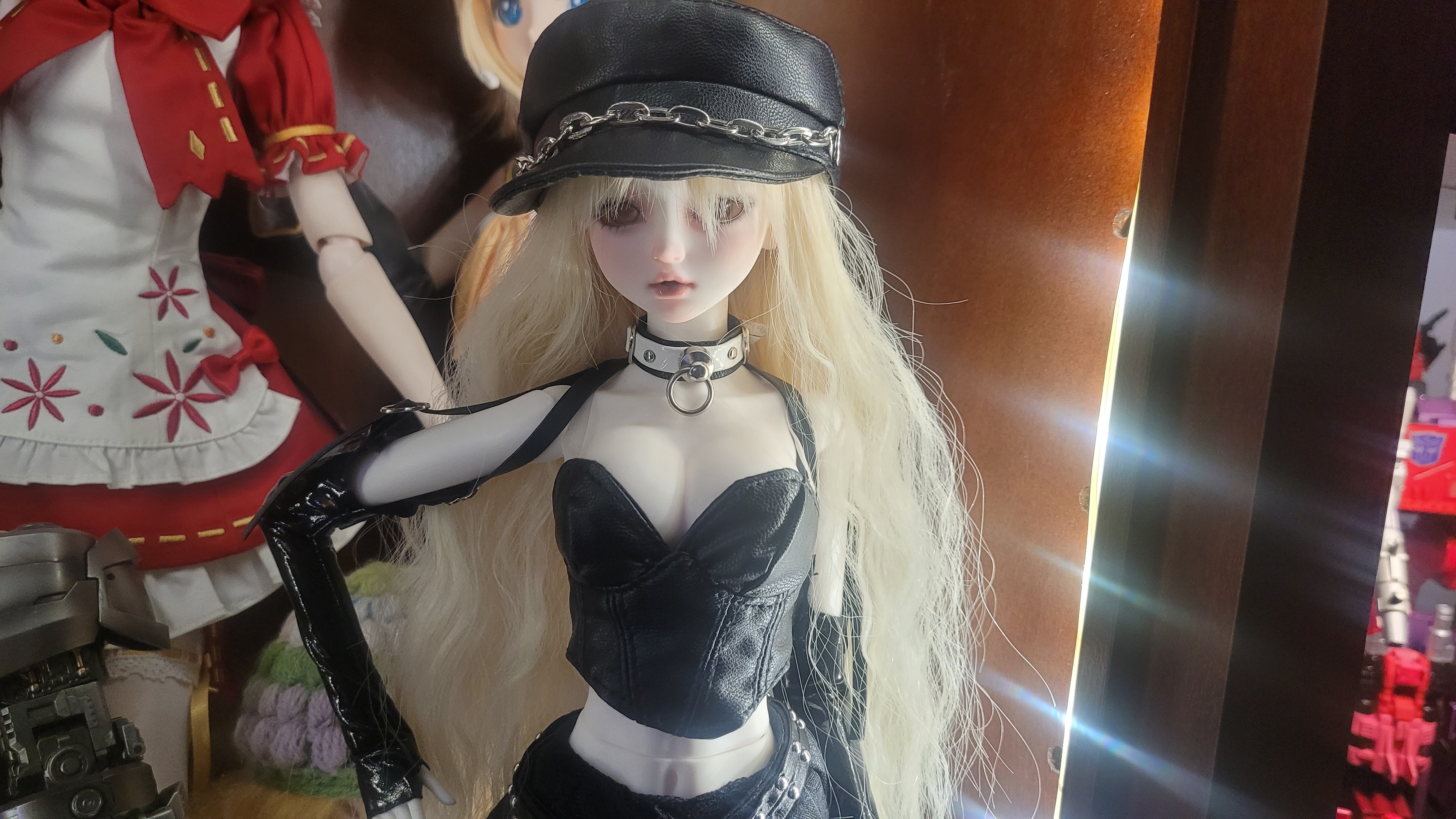 It is the very first time that I bought a legit resin BJD that works with the limbs strung with an elastic cord. She is NOT easy to pose. Normal friction ball-joints can do anything while the strung joints "snap" into "preset" positions. She's still super cute and sexy.