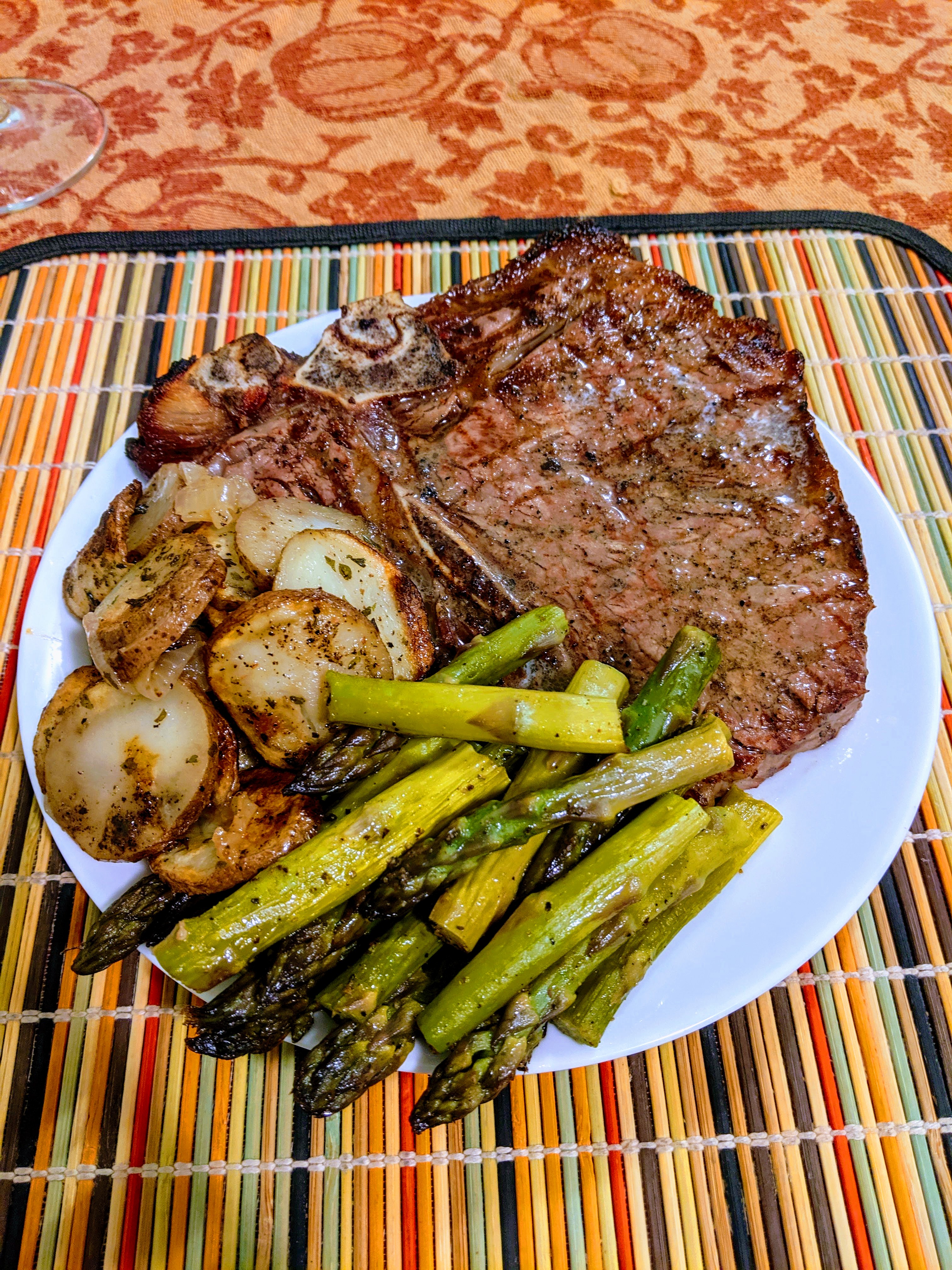 I did say salt and pepper only, buy I couldn't help but top them with some truffle butter while they rested. Grilled some foil wrapped asparagus and red potatoes with onions, all paired with a pinot noir.