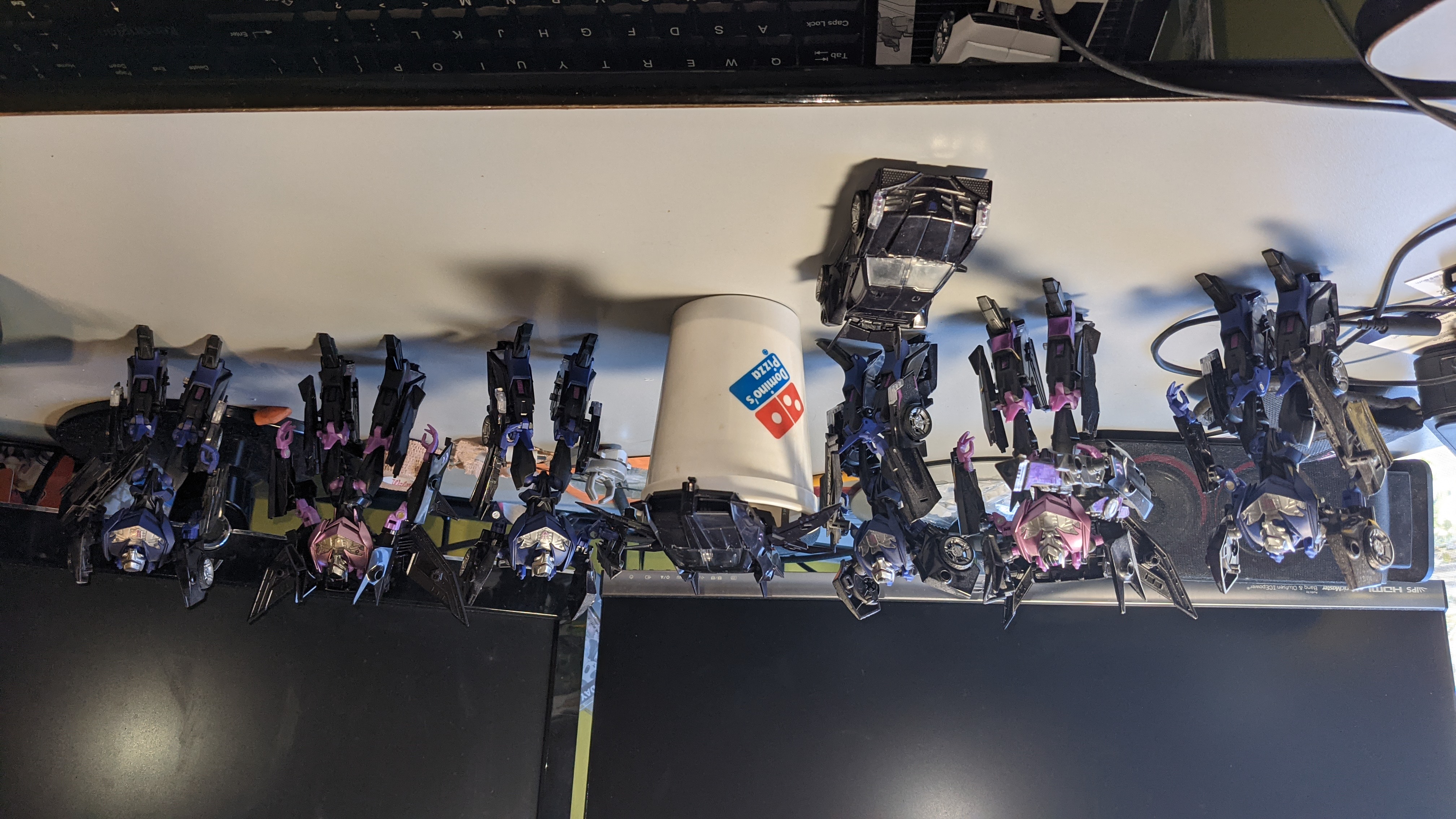 Anyway, I've already made arrangements to sell off one of the extra Breakdowns and my old Arms Micron release that has seen better days. (These stickers are not built to last) So behold, my army of Steves!