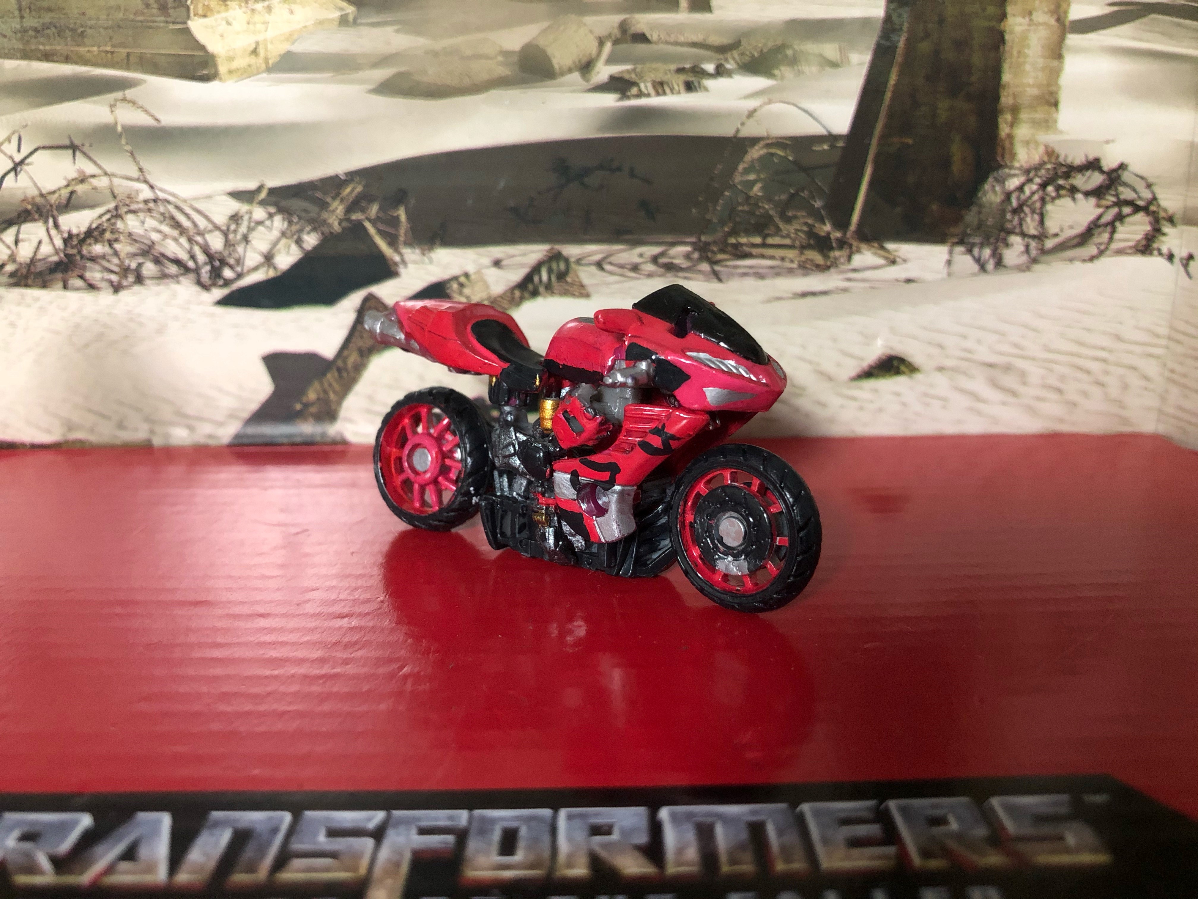 As with robot mode I repainted the entire car in gloss red. I also added gunmetal to the bottom of the doors and to the grill matching the actual car. I finished with the rear of the car, painting new headlights, the exhaust pipes, and the license plate.