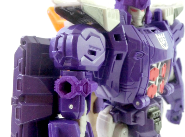 This was so easy not to screw up, and that is where the massive disappointment comes from. After all these years we finally had a nice voyager Galvatron, who looked great for the most part and had the giant canon alt mode from the film. You could feel the excitement in the air. It did have a Titan Master / Headmaster gimmick, but that didn't seem like it would make much of a difference. RIGHT?! Well, we got the toy and yeah, that gimmick really messed things up. His small headmaster head needed a flip up mask gimmick to actually look like Galvatron. But since the mask is flat, it didn't give him a crown around his head, just the facade of one at the front and it isn't close enough to his face so it looks like crap. Plus, he can't turn his head around enough with it. To add insult to injury, the hole in his chest seemed big enough to house a whole head so we can only imagine how better it would be if he didn't have to work in the head master gimmick (or at least go the full helmet way like the leaders, he has the space for it). We were THIS close to a great Galvatron!