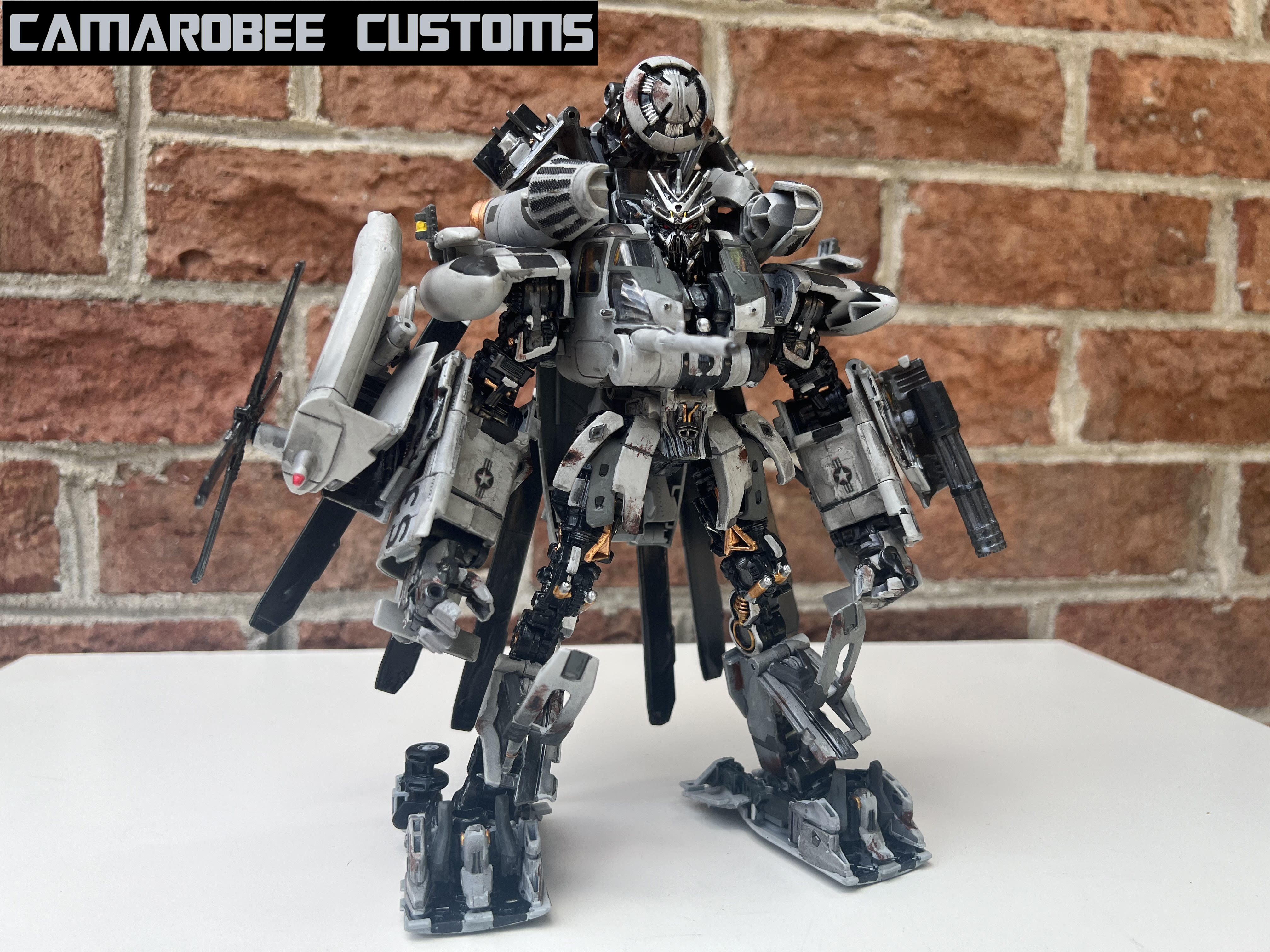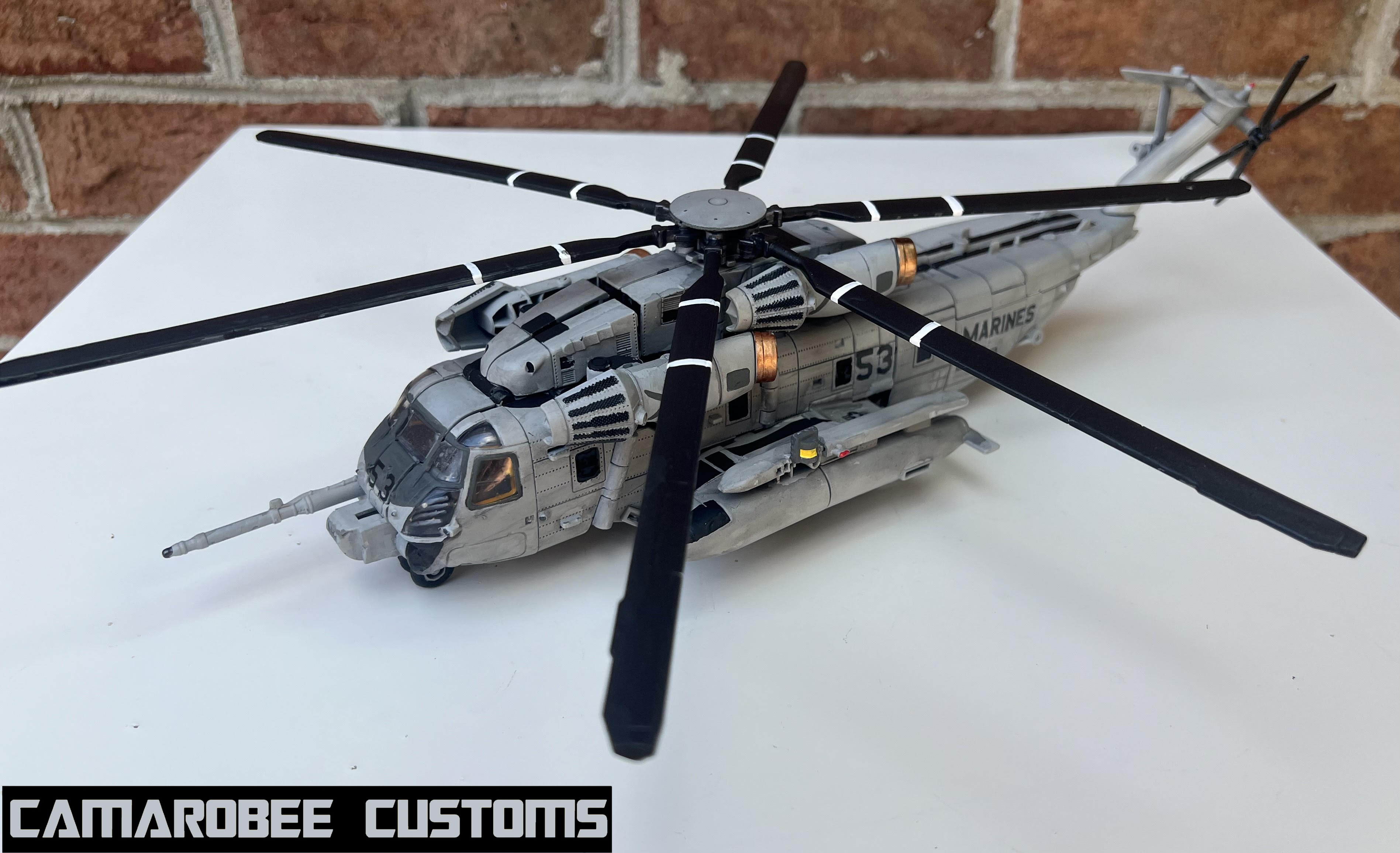 Just finished up my custom Studio Series Grindor, Ravage, and Recon Ravage! This project took a very long time to complete, partially due to my first Grindor breaking but also due to the modding I wanted to do to give Grindor a more accurate CH-53 alt mode. I modified the front nose section, added a detachable third engine, and made a new tail rotor piece!