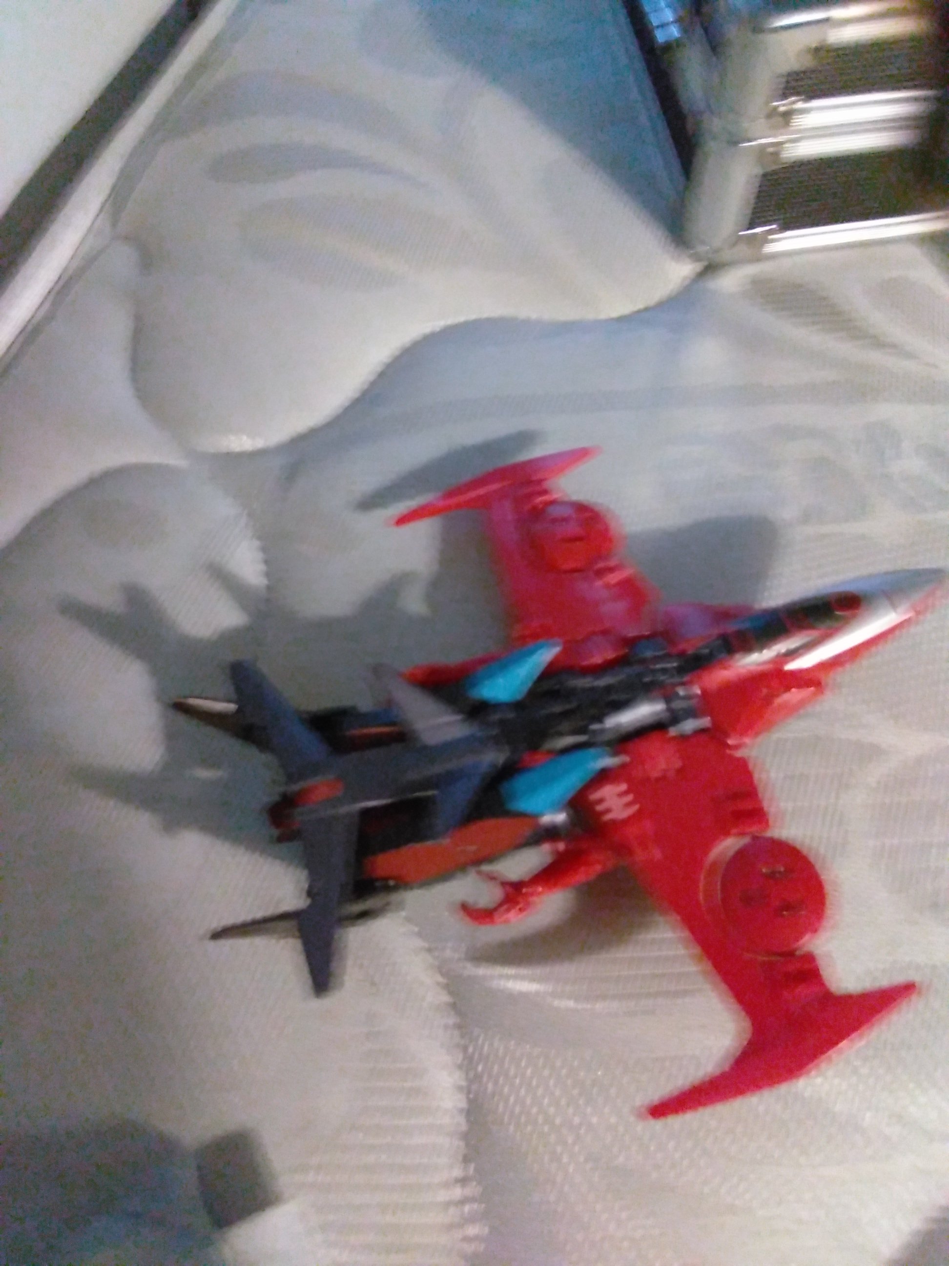 Does this look like a good enough transformation for the Deluxe class Robots in Disguise Windblade? It looks like the arm tabs are meant to go into the tabs, but I decided throw in the towel on that idea. I don't know if I still have her weapons because I look at things like extra pieces as a nuisance. I tried watching a video review on her; but when you have to pause and put down a phone down and have the screen saver come up, it can be a drag. If this isn't good enough, then I'll just hope she's worth enough to sell for enough money to buy a real robot by the time my mom's great grandkids are grown up. The reason I'm asking is because I want to decide which Deluxe class Transformer to play with the next time I watch a one hour show that's not a game show.
