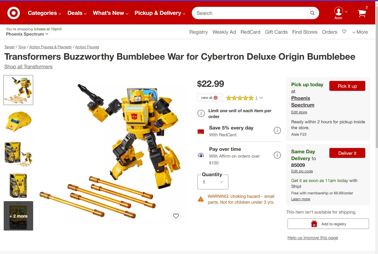 And I struck out at more targets today. One stocked the SS 2-packs, but the Clunker Bee set was already gone again!
