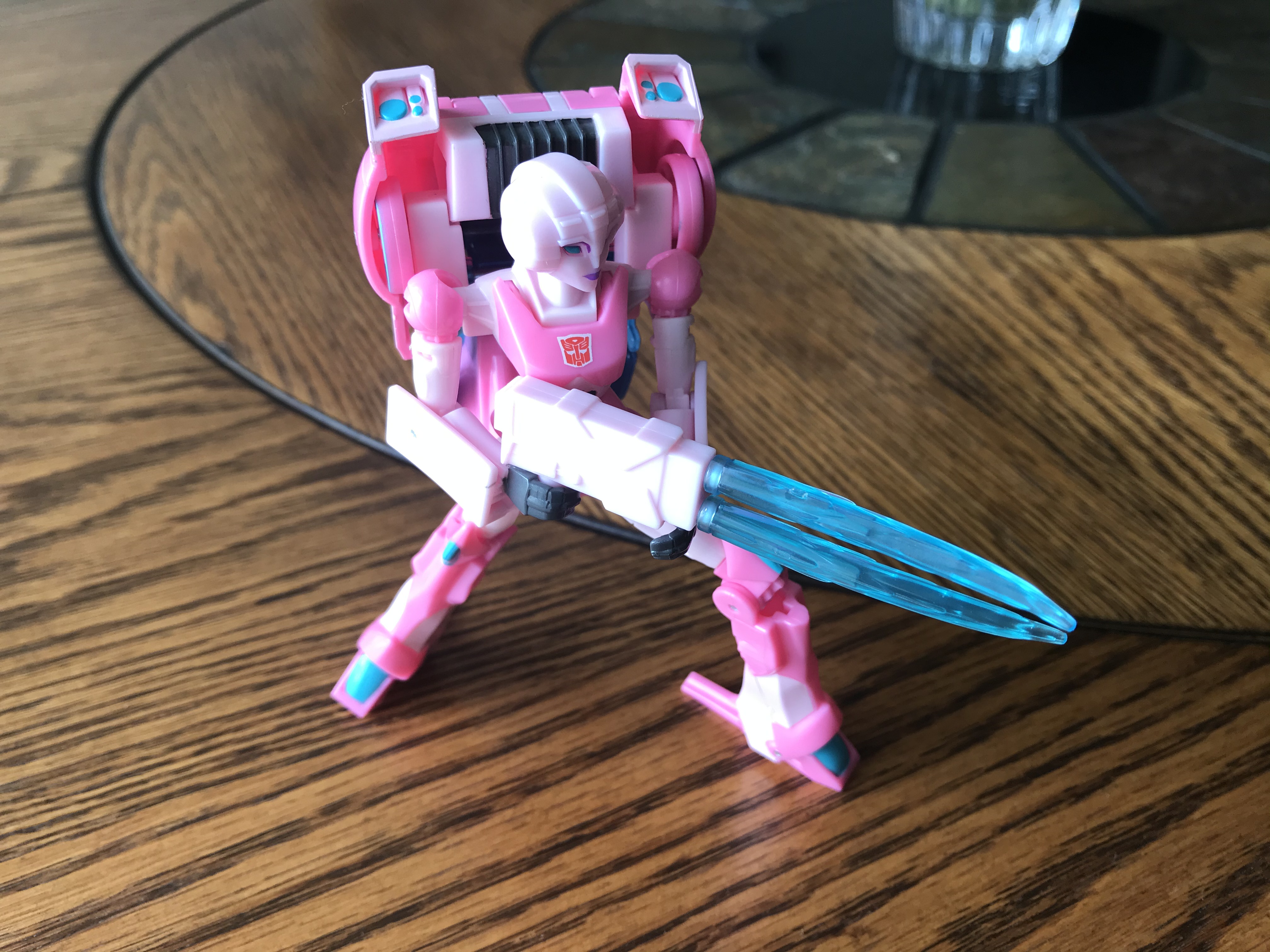The deluxe Arcee is a little limited articulation wise (wrists and backwards arm movement) but she is a pretty good looking toy. I adore her style