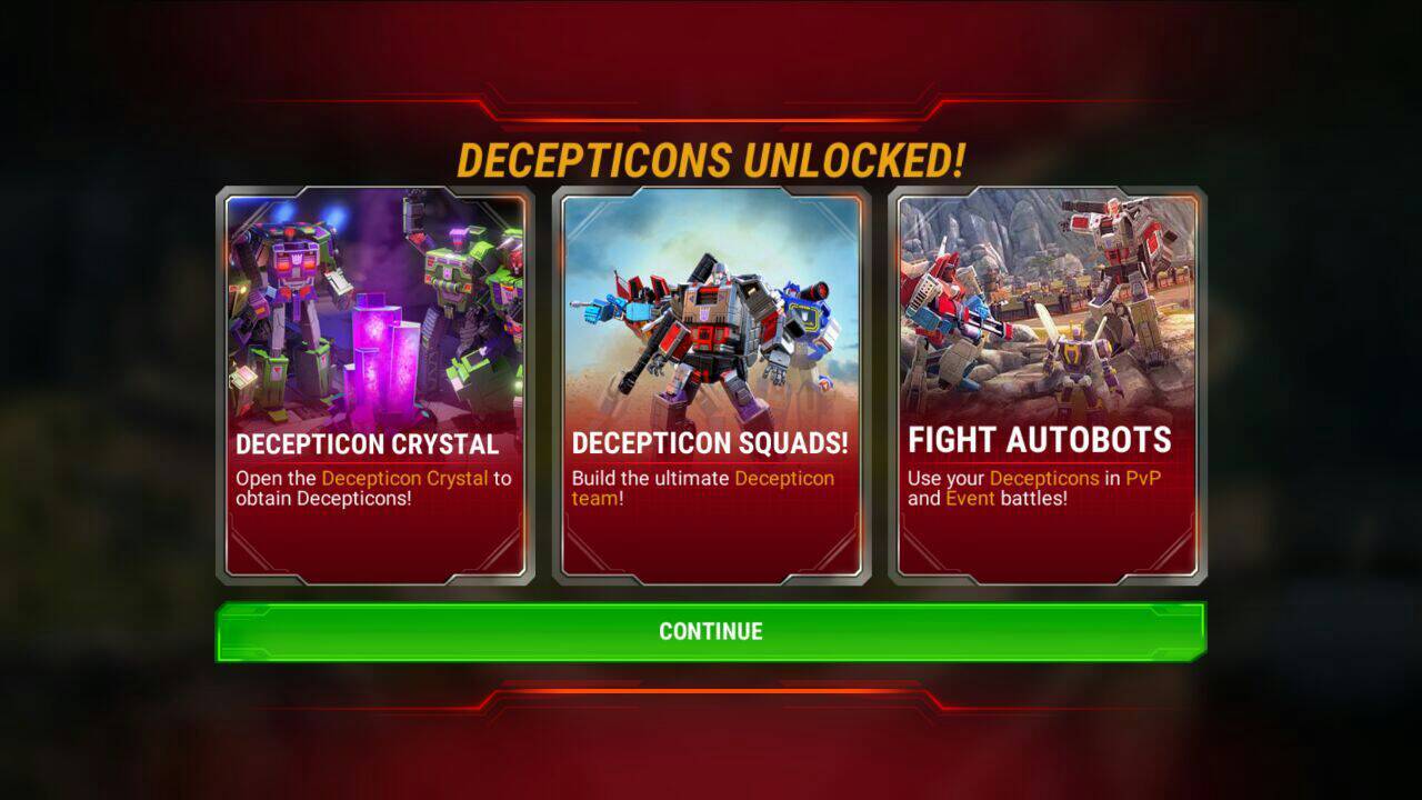 Prepare to expand your team of characters and increase your bot power! Factions will be available on Thursday March 16th. All players which are HQ 8 and above will receive an Autobot/Decepticon Crystal to unlock 4 bots of the opposing faction once the release goes live.
