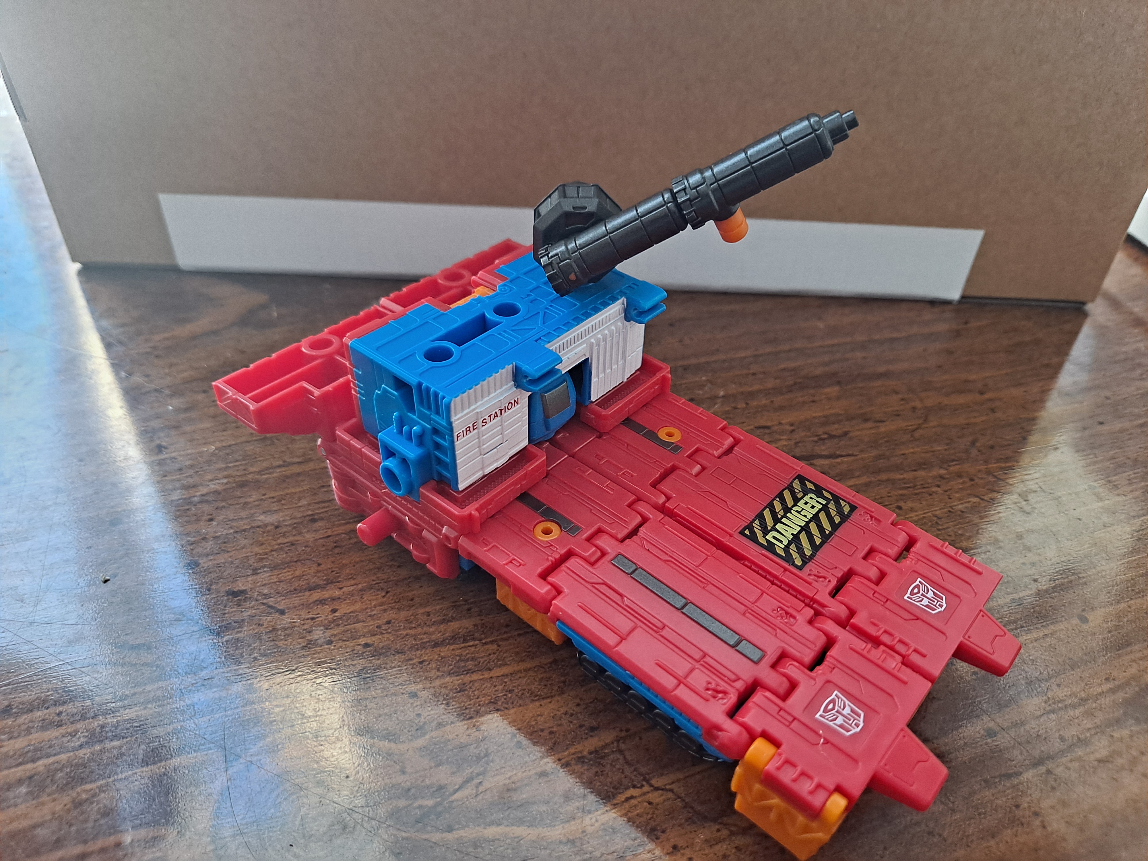 Decided to do a quick and dirty design and photo shoot, came up with two fire station and one tank design that use similar layouts, but hit the uploads per post limit, so the second fire station design will be in a second post. Wasn't until I got him back out that I realized they fixed the upside down "FIRE STATION" from the stock photos, at least on my copy, making things easier. First up is the 'snubnose' fire station, which better matches the original's boxy proportions at the cost of having a really egregious kibble layout.