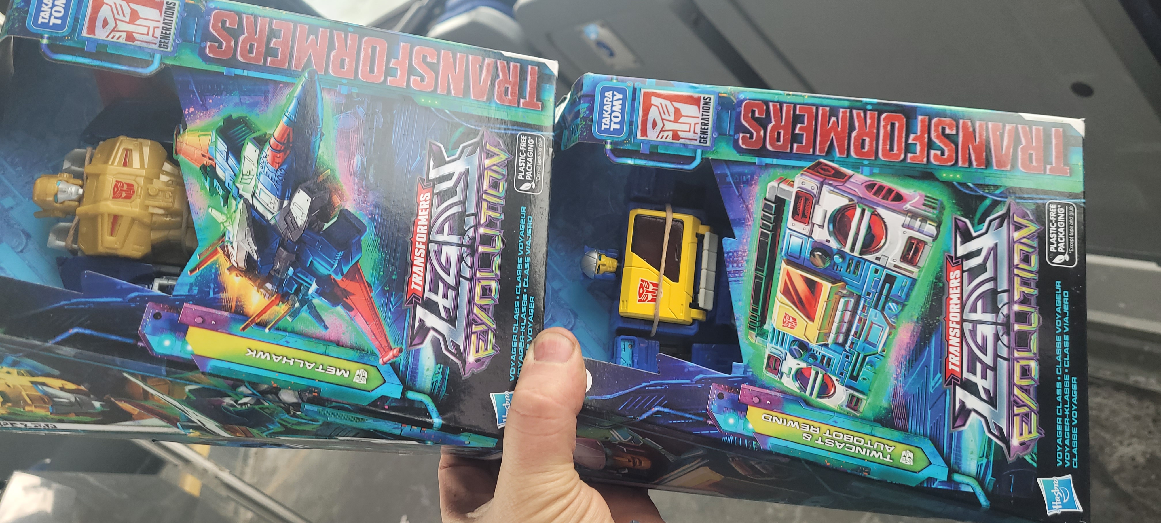 Distribution is wild. Turns out Metalhawk shipments landed in North America a little while ago and the smaller stores have been quicker to get them to their clients. While BBTS is in the process of fulfilling orders, some Canadians (like me) were able to get him live. The one pictured below (by me) was bought at the store Geekstuff in Laval, Qc, where he is still in stock at $50 CAD ($37 USD). While a review is coming, here are some in hand images first. We see a comparison to Cyclonus, his mold mate, and the Titans Return Metalhawk. Plus lots of other images showcasing his effects part compatibility and scale with other figures.