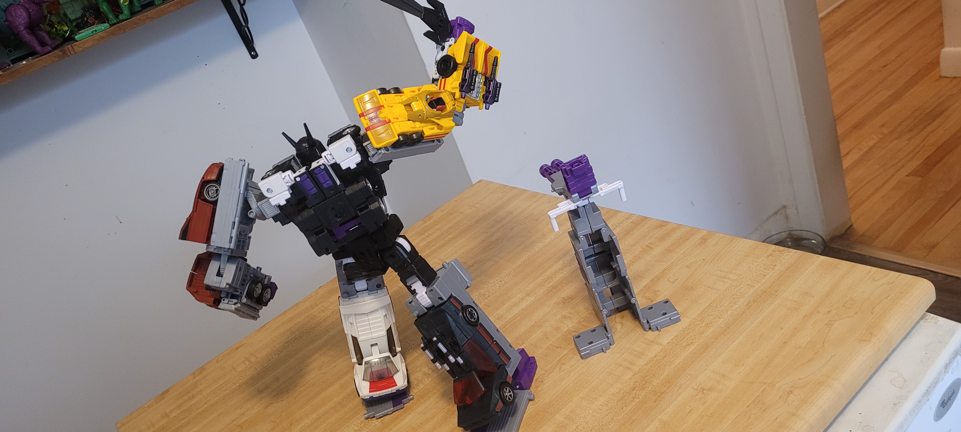 I would have never guessed that torso mode. It's amazing how that big truck became that tiny and compact block. The overall combined mode is impressive, nicely proportionate and STABLE. Hear that, Combiner Wars?