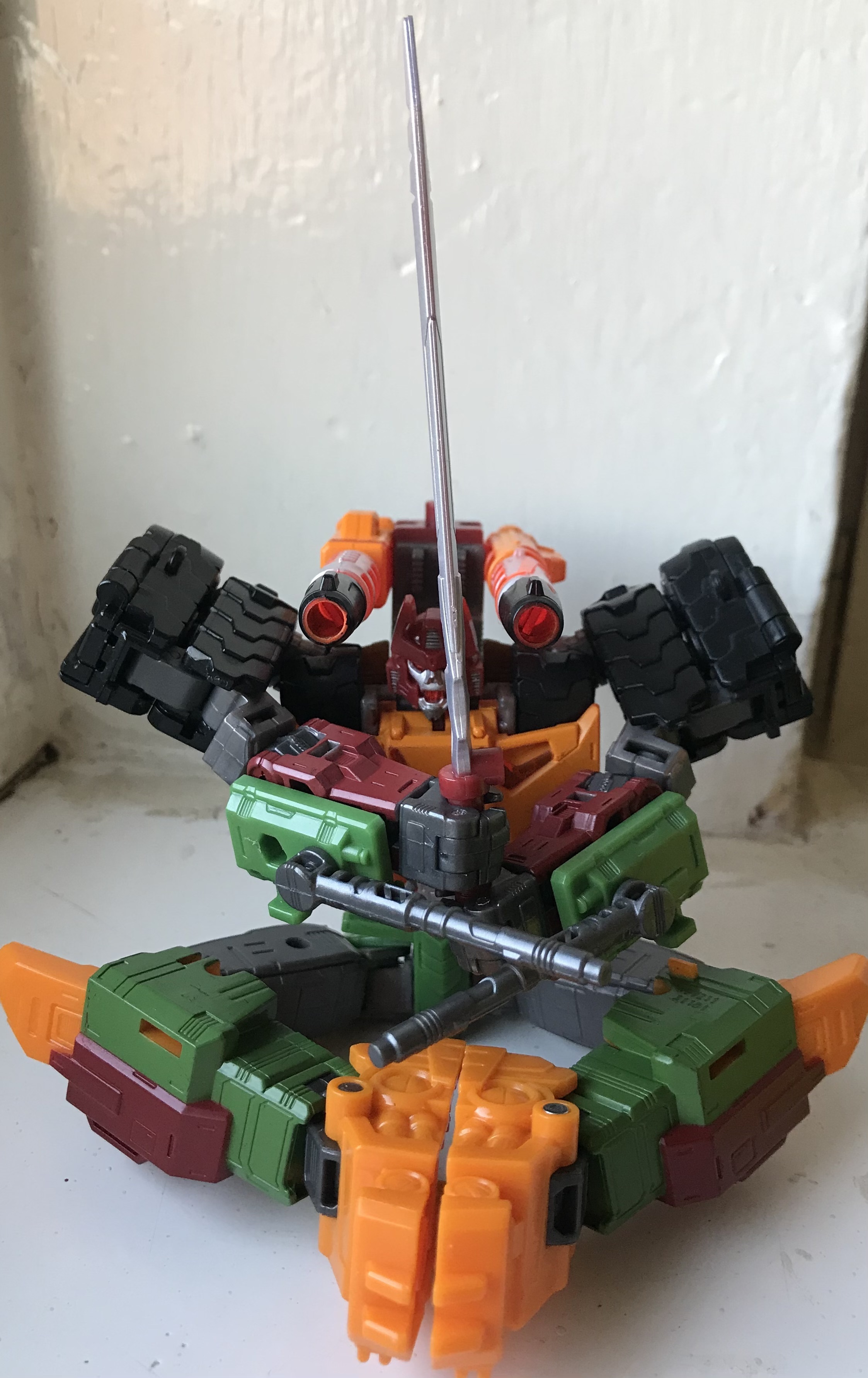 * The tank barrel's back is trapezoidal instead of round, restricting its elevation to a single angle. There is literally no reason to do this transformation-wise, it's just bad design that hampers what should be one of his best features.