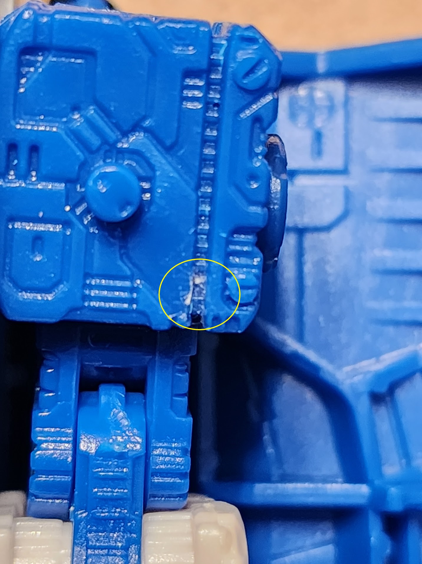 But I do hope if they do likewise for Ramjet and give us a Thrust restock, they'll switch to the original leg panels or else alter this one. This new leg panel they made for the Coneheads very clearly did not take altmode into account properly - they can't close properly and they block access to the flight stand port. And the limited access to the coneheads probably prevented Hasbro from getting adequate feedback.