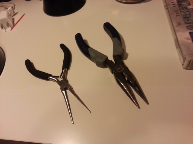 I used the smaller pair the most and the tappered back really helped round out bits. I used the larger pair for more torque on some folds and when the tabs had to be twisted.