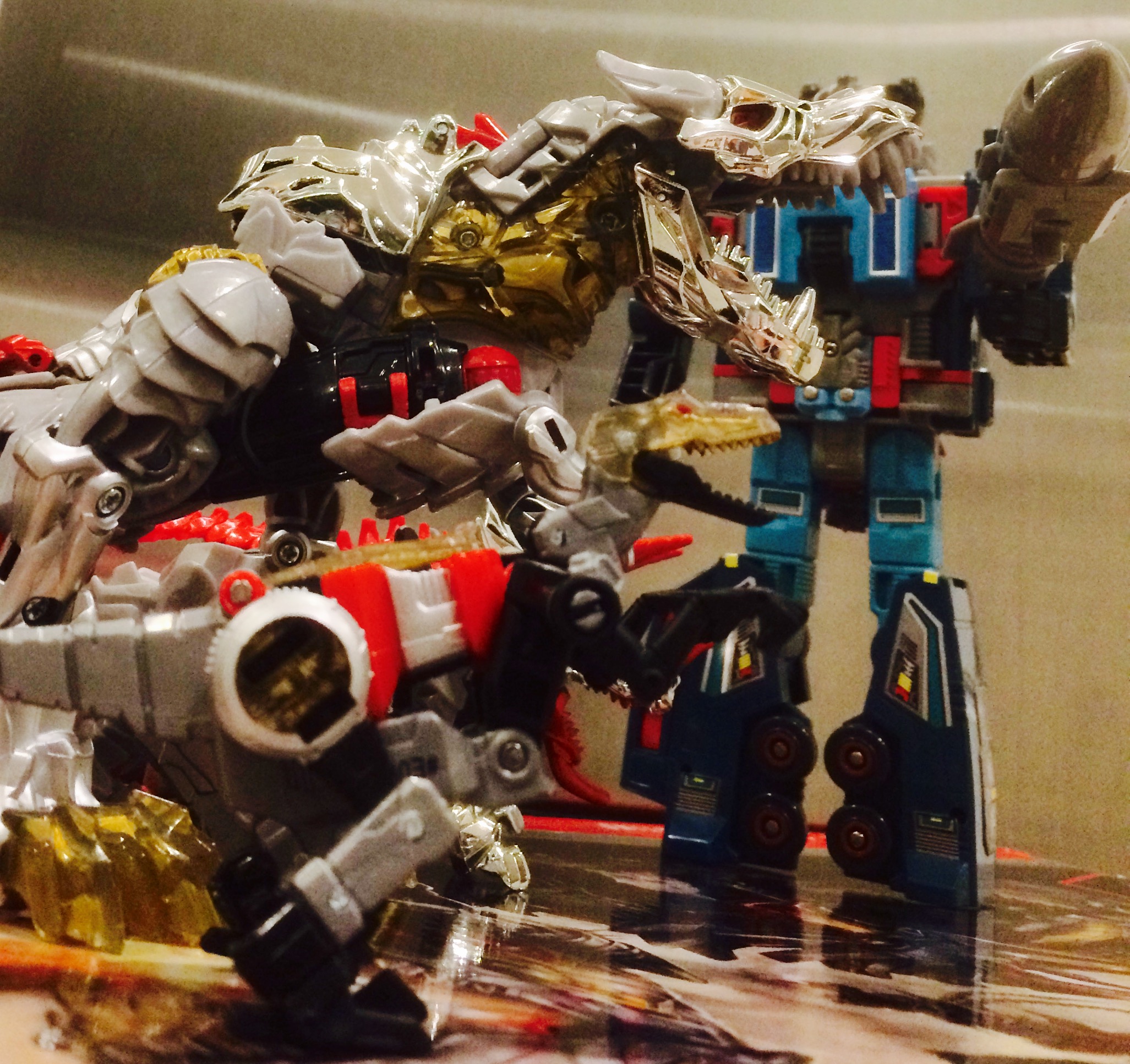 I've had two Grimlocks -- the G1 original (who's dinohead is hanging by cracked plastic) and the recent Platinum Dinobots (Bayformer bodies + G1styled heads/colors + vacuum metalized).The original's alt mode T-Rex was perfect. But dem legs in bot mode? Maybe if he truly is part chicken.