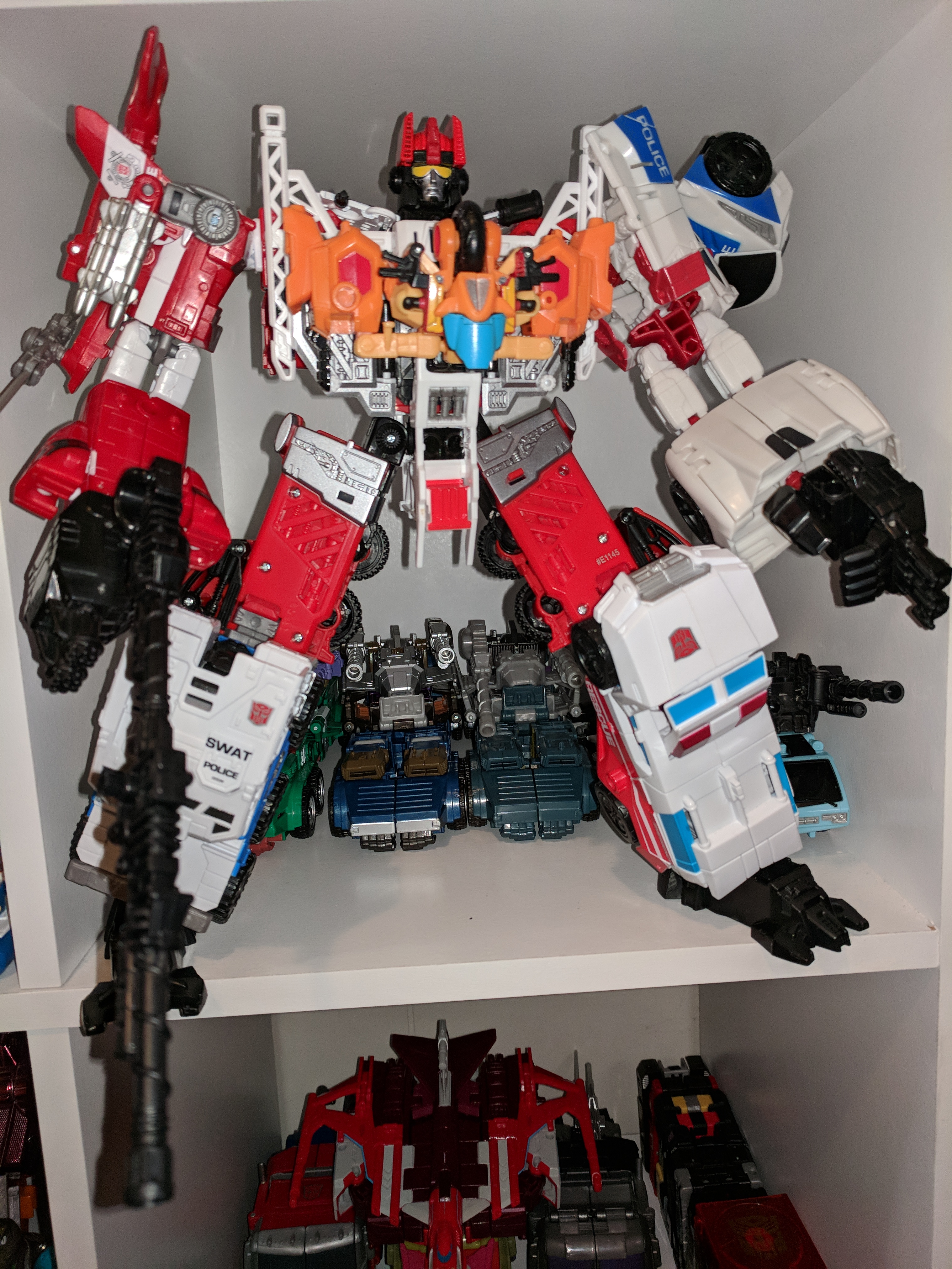 but I'm also glad I will have Inferno in a different mold than Grapple, make him a bit more unique. And he looks very IDW with that robot mode, so I'm fine with it. He may even get a team and combine some, but I'm not sure yet. I could give him Lost Lightatron's limbs, or the autobot limbs from the line and keep Elita her own person (and she is really good to me as her own person, she looks good with PotP Prime, TR Laser Prime, and Alpha Trion).