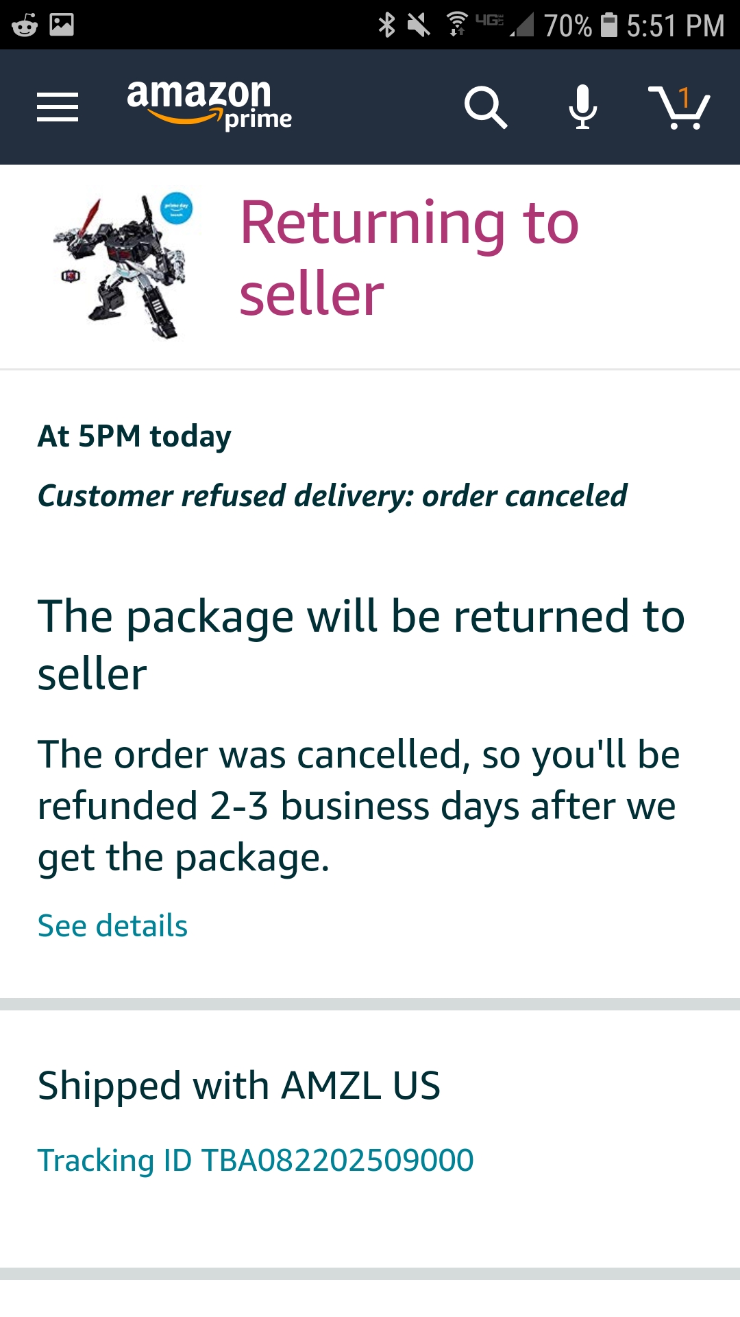 Burn wrote:TrypticonCarne wrote:I got an update that they know i didnt cancel it, it was a computer error caused by them sending it earlier than they meant to however they cannot fix it or resend the figure because any thing returned is put into a bin to be resold to sites like tophatter, and it's one per customer and i already bought it technically