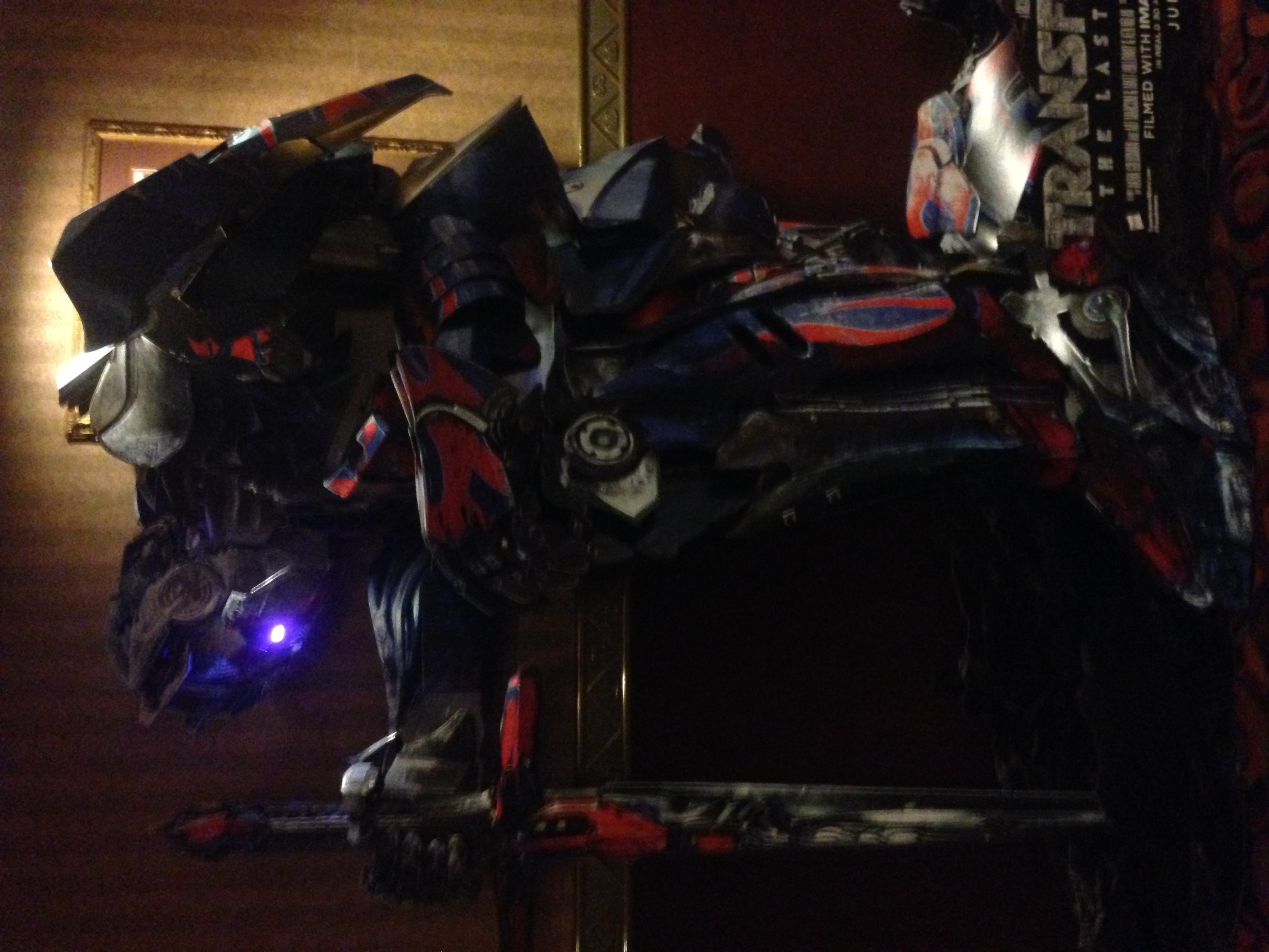 EvasionModeBumblebee wrote:Saw a familiar face when I went to see Pirates of the Caribbean yesterday! It's a full fledged 3D cardboard structure of Prime, including glowing, purple eyes.