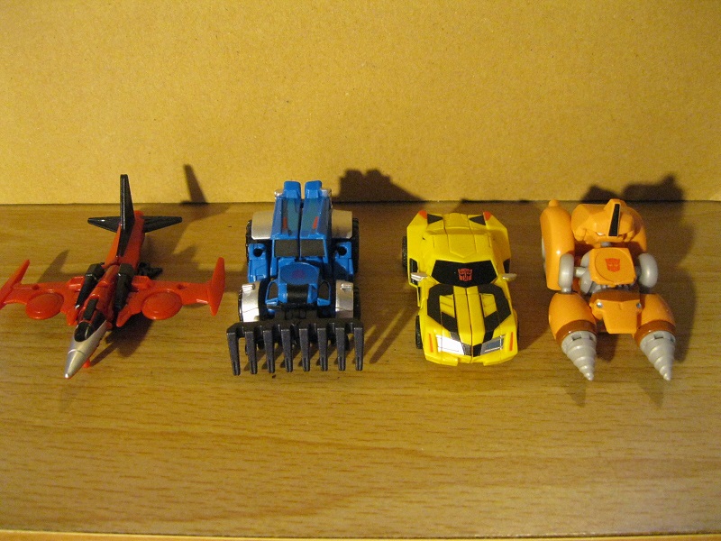 And in Walmart, I found some TLK Quick Changers! Those guys are ADORABLE. 4$ each is a reasonable price for blindbag figures and those things are cute and clever. A bit cheap on paint but oh well. I got Optimus, Grimlock, Bumblebee, and Blackout. Grimlock being my favorite of the bunch.