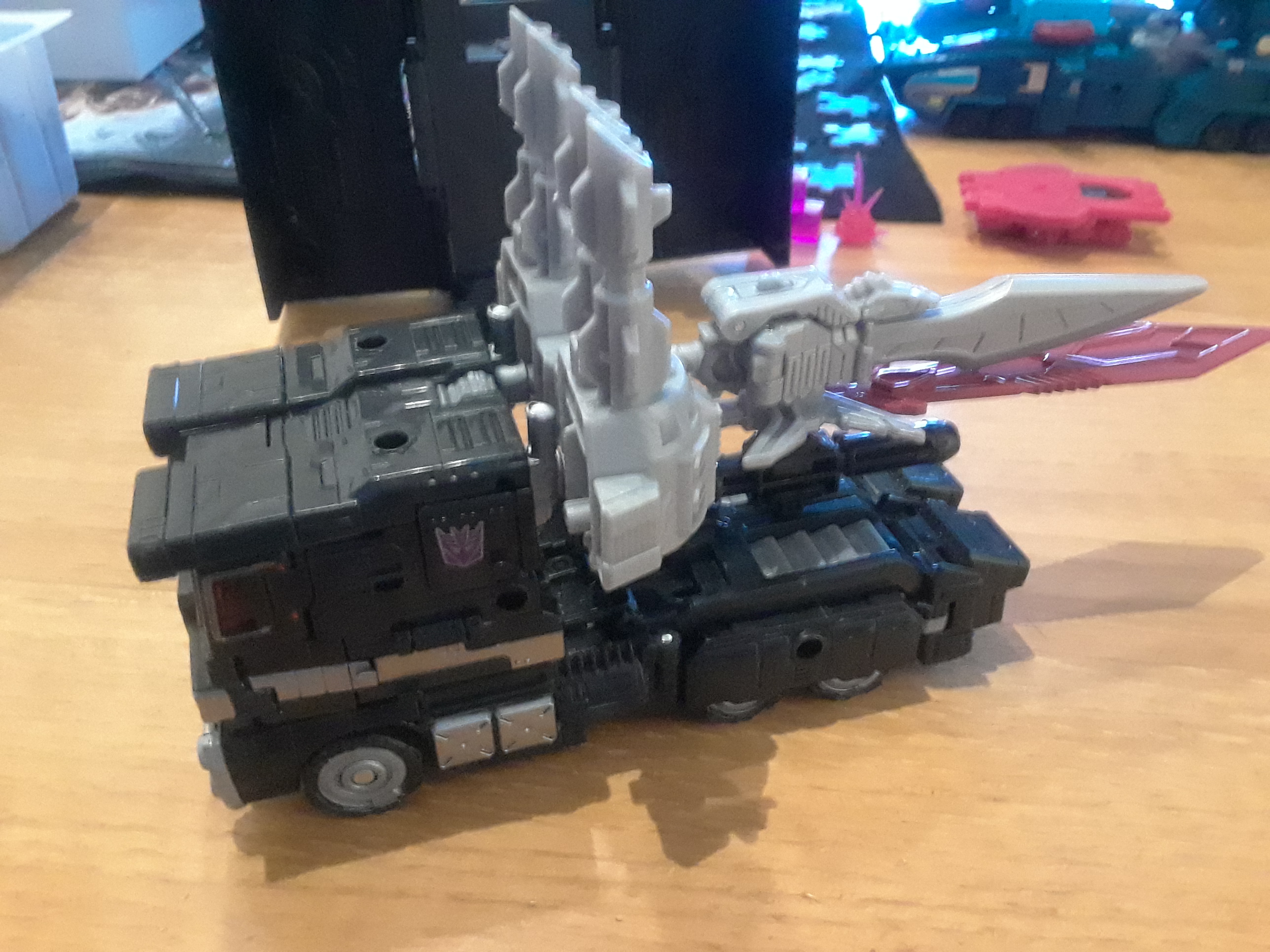 I like how Nemesis is a blend of Siege/Earthrise/POTP. Fixed the issue of his weapons storing on his truck mode, although can't connect the trailer like this obviously, but still looks cool.