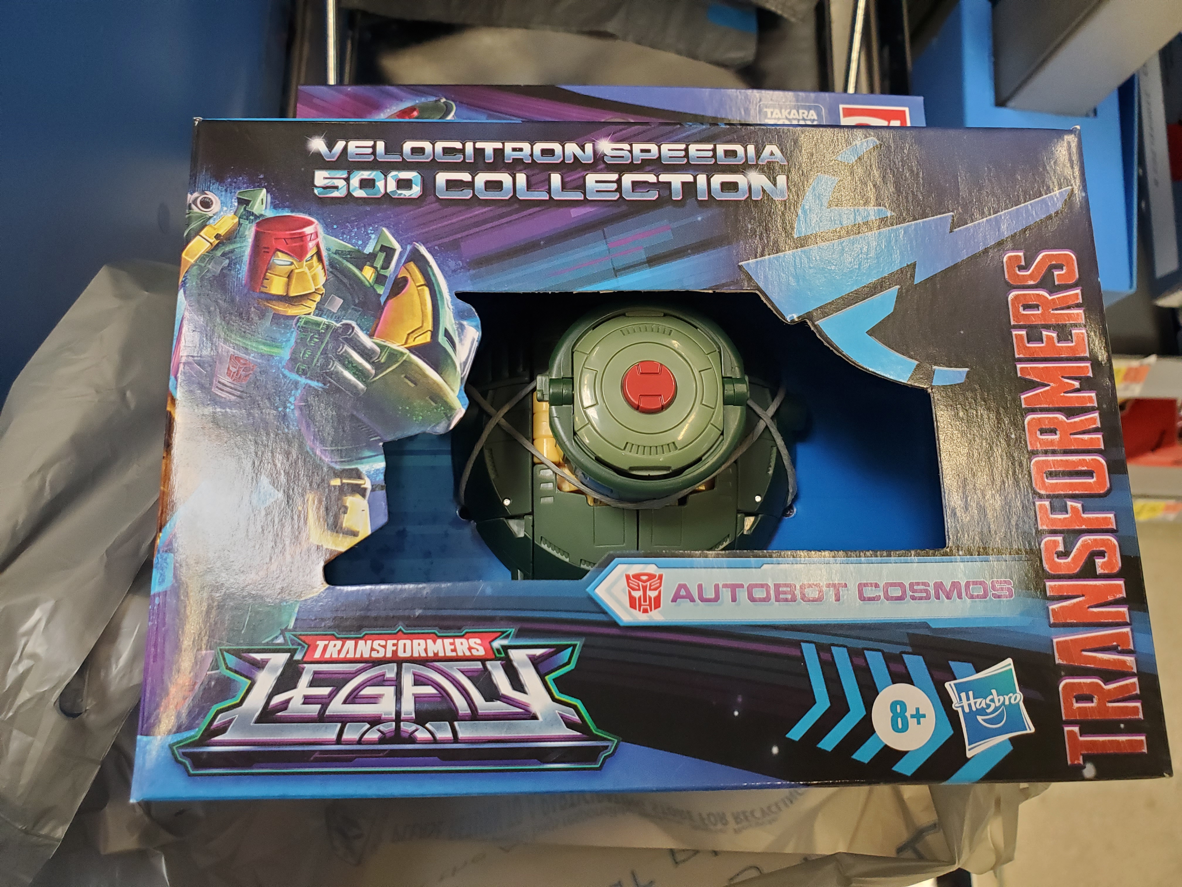 Laserbeak inside (own him) and the Deluxe Bumblebee SounDwave that i skipped since it wasn't available at the same time. Only other legacy figures we have are Arcee and Laser Optimus Prime. Our shelves are technically overstocked with Blaster and Legacy Arcee.