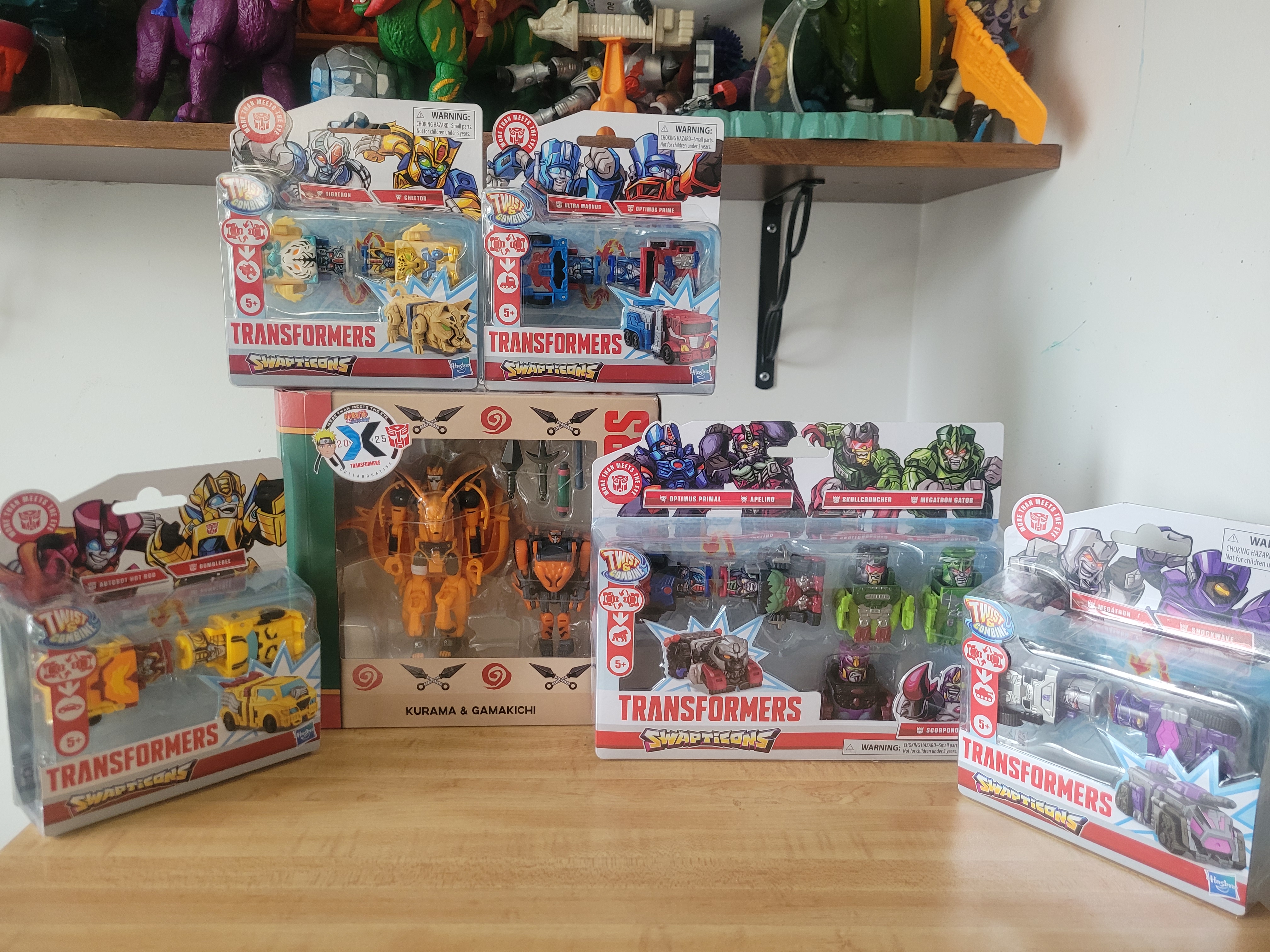 Anyway, Stopped at the local Walmart I don't go to very often anymore and the Transformers section was almost completely empty aside from some TFOne stuff. All of the Legacy and Studio Series stuff at all price points was gone. Only thing new they had was Retro Gears (no Bee) and Swapticons. Picked up the Swapticon Optimus and Megatron sets. I thought the twisting would be a little more involved, but they are nice to fidget with so mission accomplished I guess.