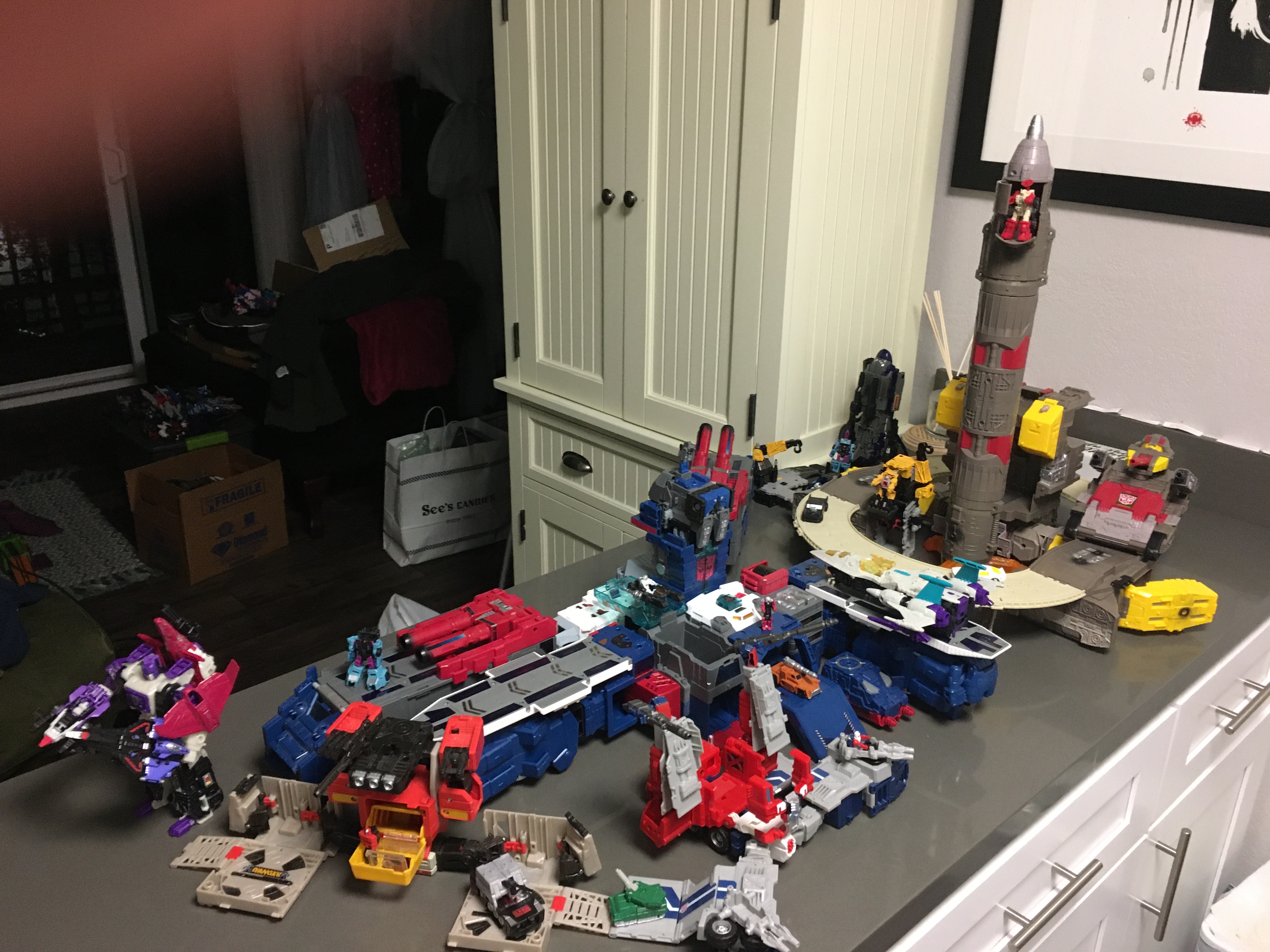 So finally spent some time playing with Scropnok and dragged out the other titans (return). And.... as much as I prefer beast mode and robot mode.... it actually made me appreciate Tyripticon’s “Shuttle” and bade mode more (need to find the sticker sheet and keep tackling those bastards). Also made me wish I’d gotten TR leader Soundwave and the (takara?) Rumble/Frenzy Retools is Rewind....