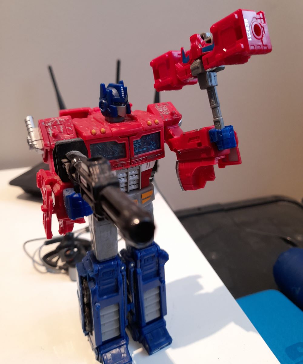 I just purchased Smashdown, aka the Chicago Bulls hammer. Initially i though he was weird but he's fun. One the instructions and most reviewers don't mention from stock footage his arms can wield his handle it as a gun. Hammer looks good on Optimus but the hammer handle it a b***h to get into the slot :BOOM: :evil: