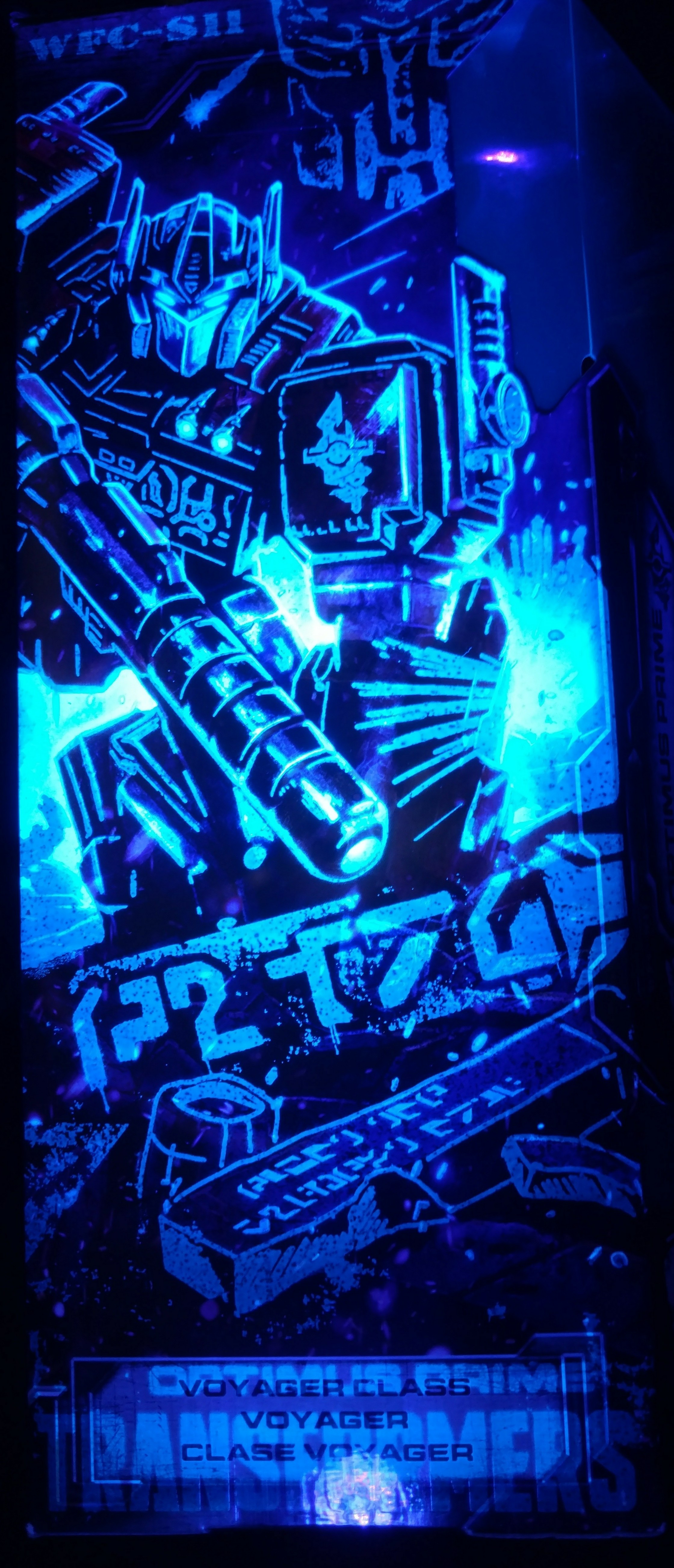 Yes, there are some more outlines like the round turbine looking thing on the ground, the symbol of the box'es cardboard insert on Optimus' shoulder where the Autobot insignia is seen in normal light and the greebling on his chest.