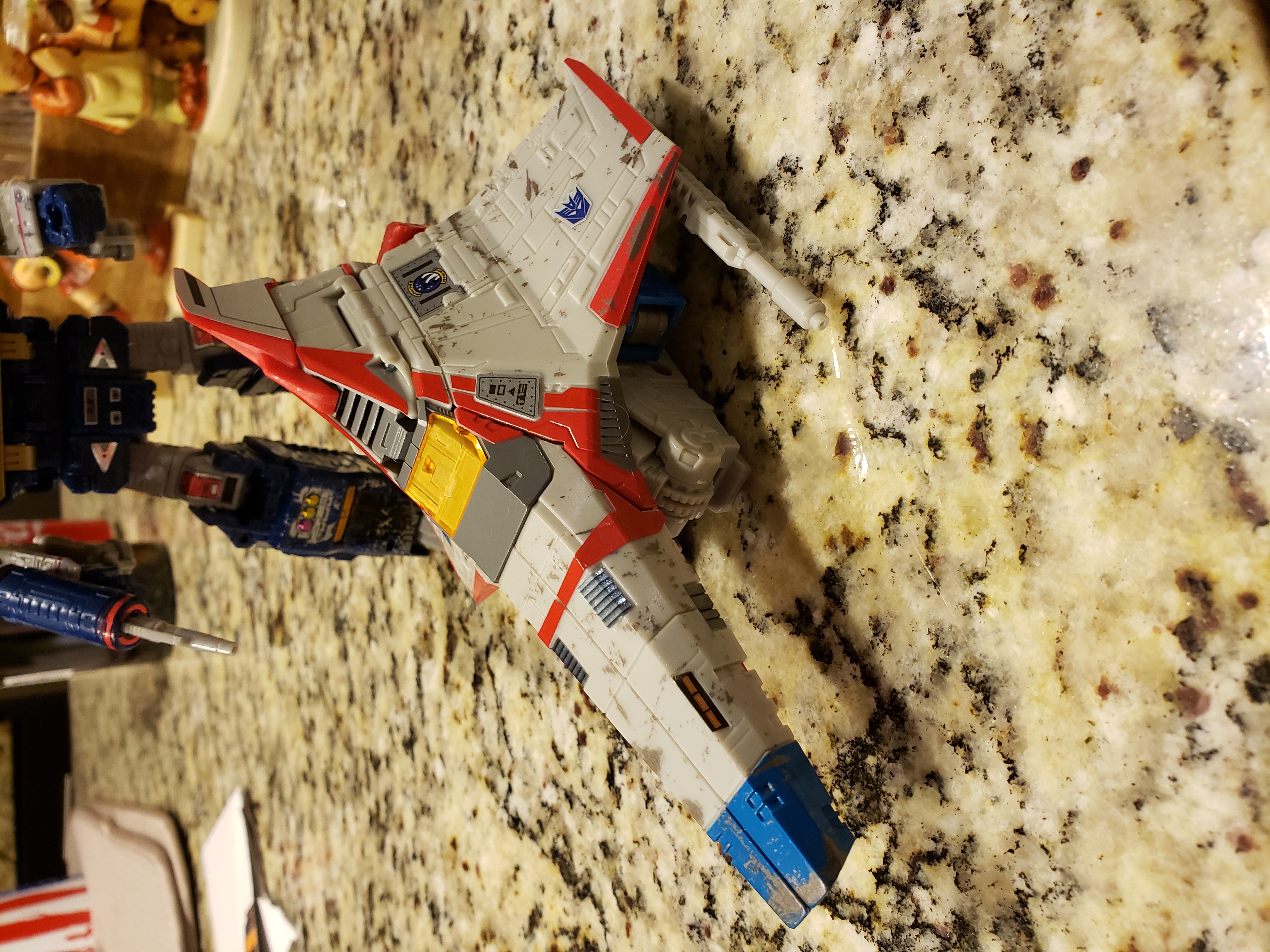 Nothing really new other than posting some pictures of Starscream and Soundwave after applying stickers and part from Toyhax. I do like how the part enhances the Tetrajet look for Starscream.