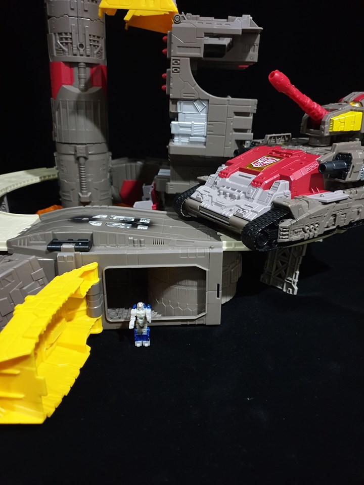 I wish someone could do a review of this Omega with the tank from the original G1 Omega to see if it could fit on these new tracks. Because if it did fit, it would be my saving grace to justify getting this one. If I could replace this non functioning tank with my G1 version which can actually move around the tracks and continuously rotate it's turrent and patrol, then that combined with Siege Omega's beautifuly detailed and articulated robot mode AND much bigger size makes this a must have.