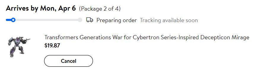 TF-fan kev777 wrote:Well great, got an update from Walmart. Scrapface and Mirage should ship tomorrow, but Hotlink is delayed until June.