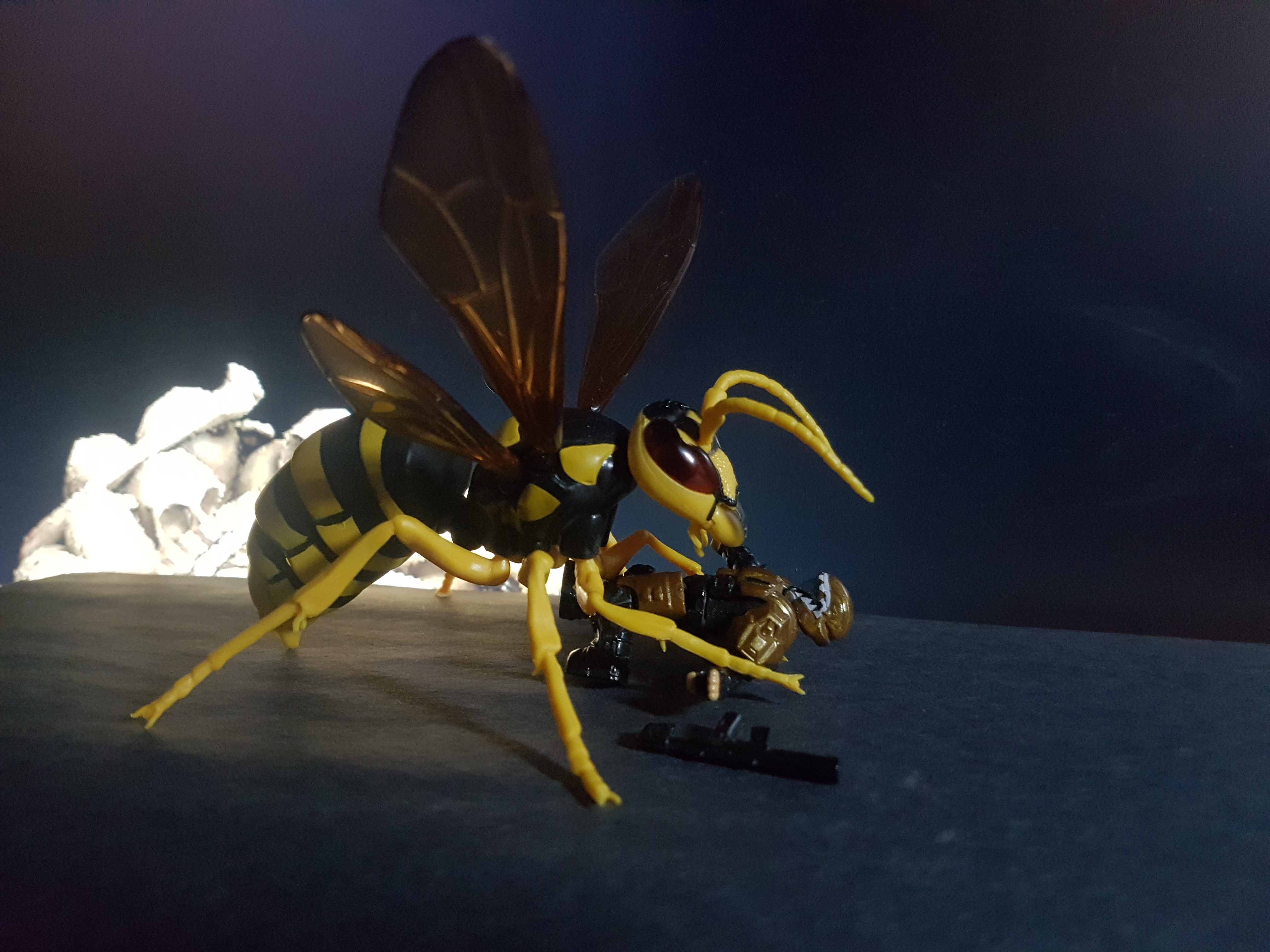 Wasp Girl and her pet murder hornet enjoying a cozy night. In light and dark mode.