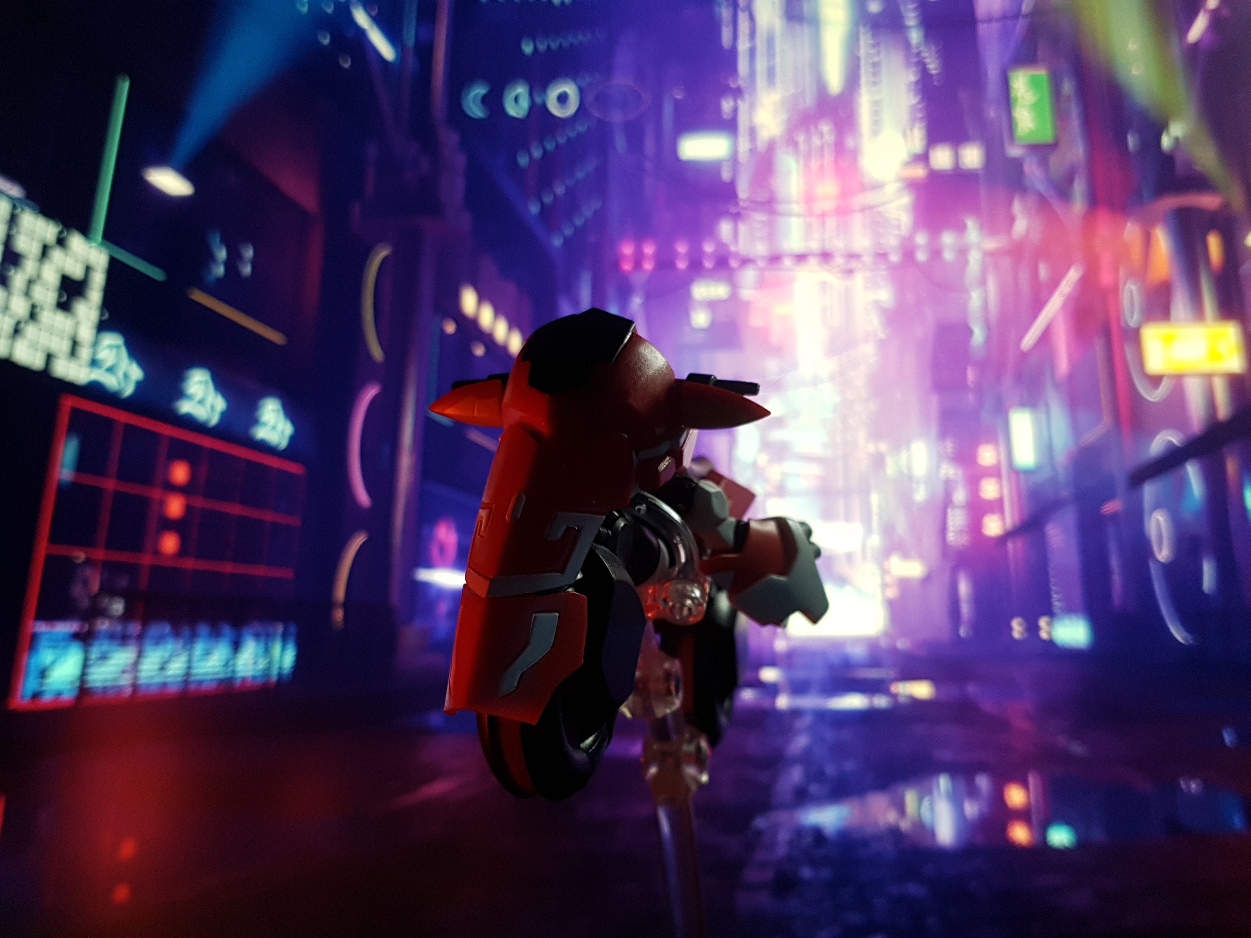 Fires_Of_Inferno wrote:'Nother motorcycle. I've been trying to break my habit of defaulting to synthwavey style shoots, but with her light-cycle inspired alt mode and the toyhax labels on her, Chromia is right at home in a synthwave/cyberpunk setting.