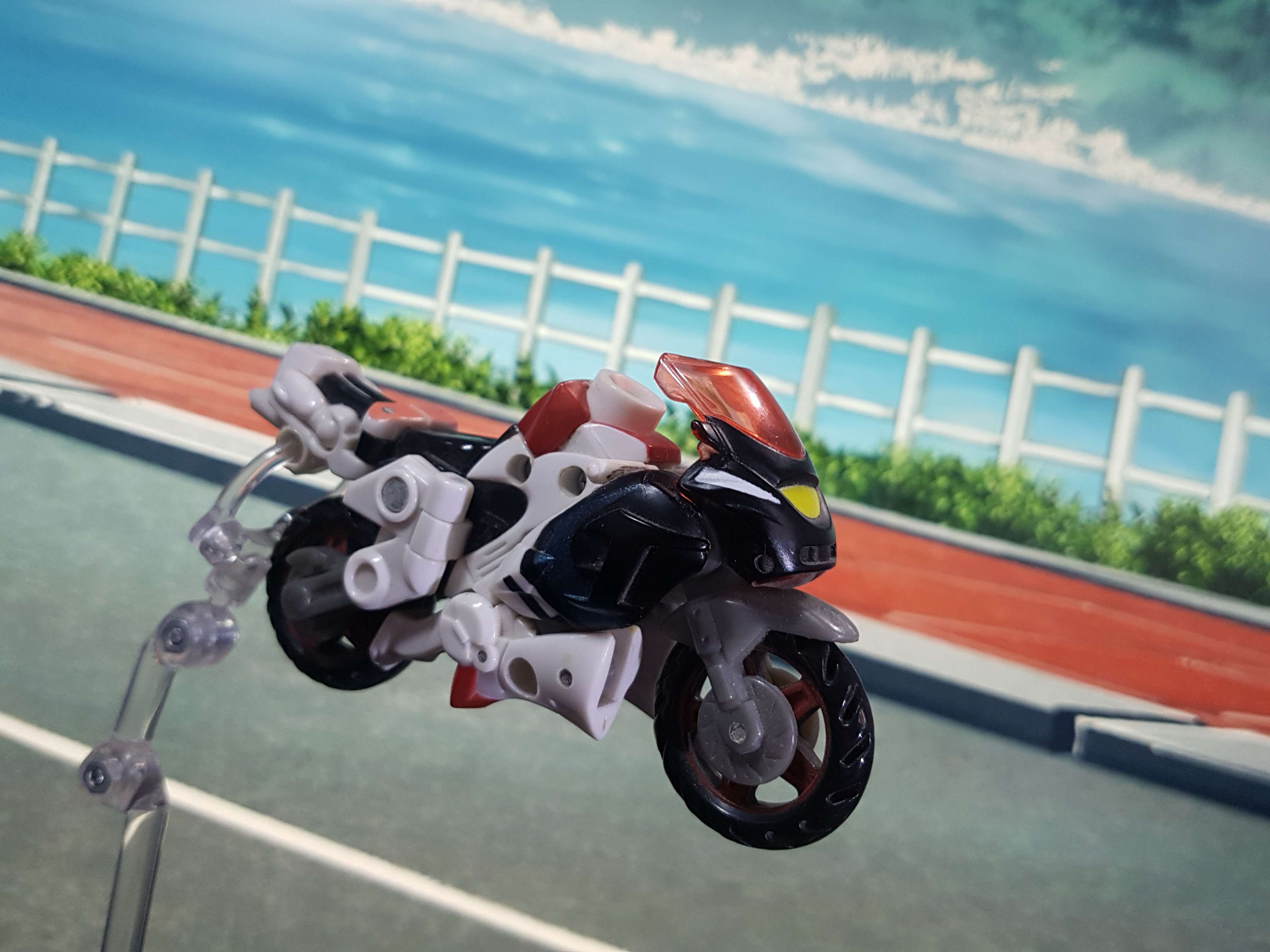 Another motorcycle-bot. Scarlet Sonic is from Big Firebird Toy, and is one of their own creations rather than being based off of anything. Still, she transforms so she counts.