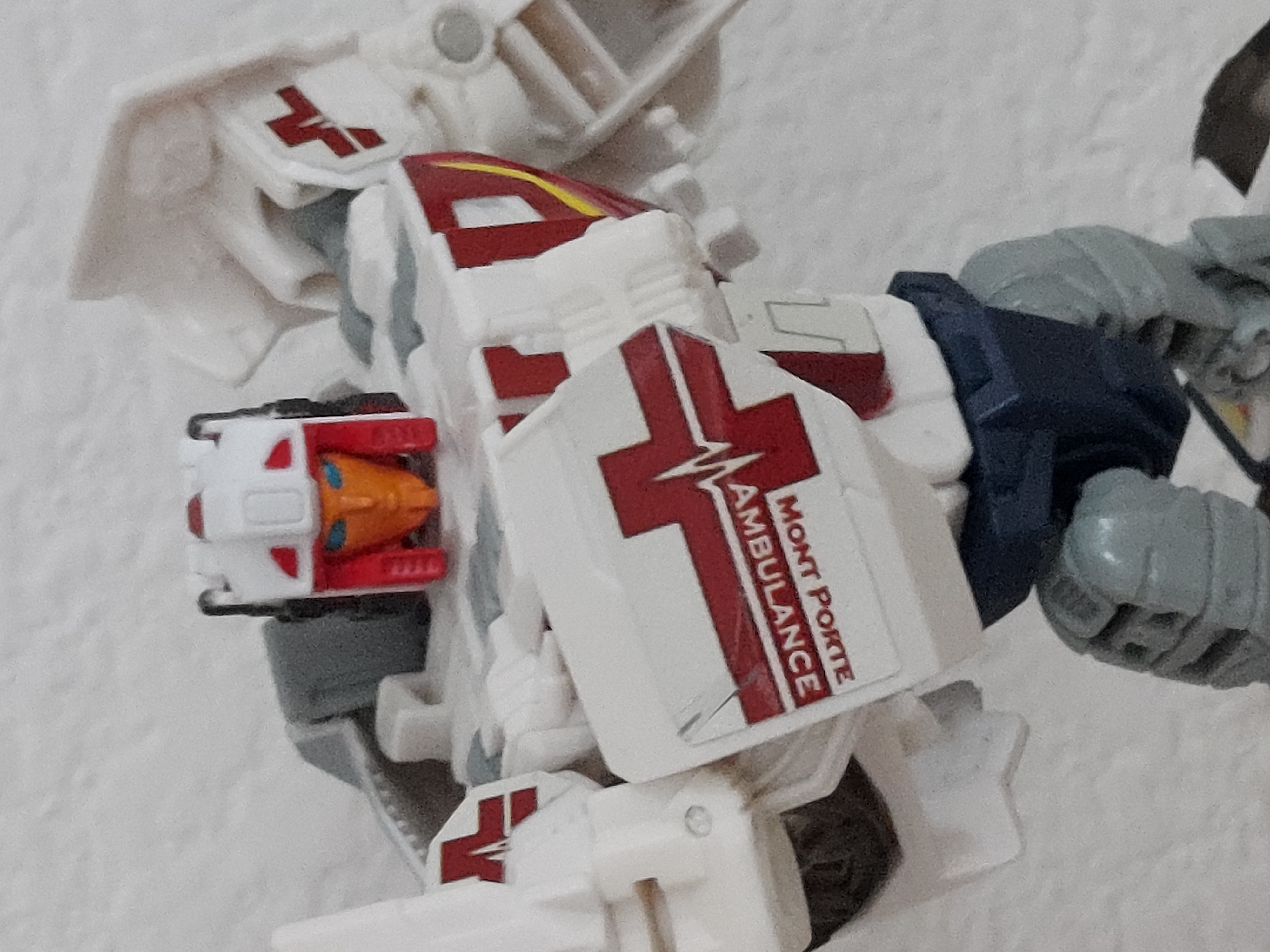 I don't think people appreciate this guy enough. Tailwhip's alt-mode is CLEAN! No robot bits poking out, no limbs dangling underneath, even his face is hidden behind a tinted cockpit. He's supposed to resemble a Hong Kong Police helicopter but I'm not sure how close to real life it is. Then you get to his robot mode and this is where problems arise. Mind you not a problem for me, I love this! Tailwhip has no real hands, but honestly I can forgive that. Despite his awkward appearance he's decently poseable! I mean, the articulation is limited, but he can still look like he's doing stuff. Also the helicopter rotors function as a spinning blade weapon, so what's not to love here?