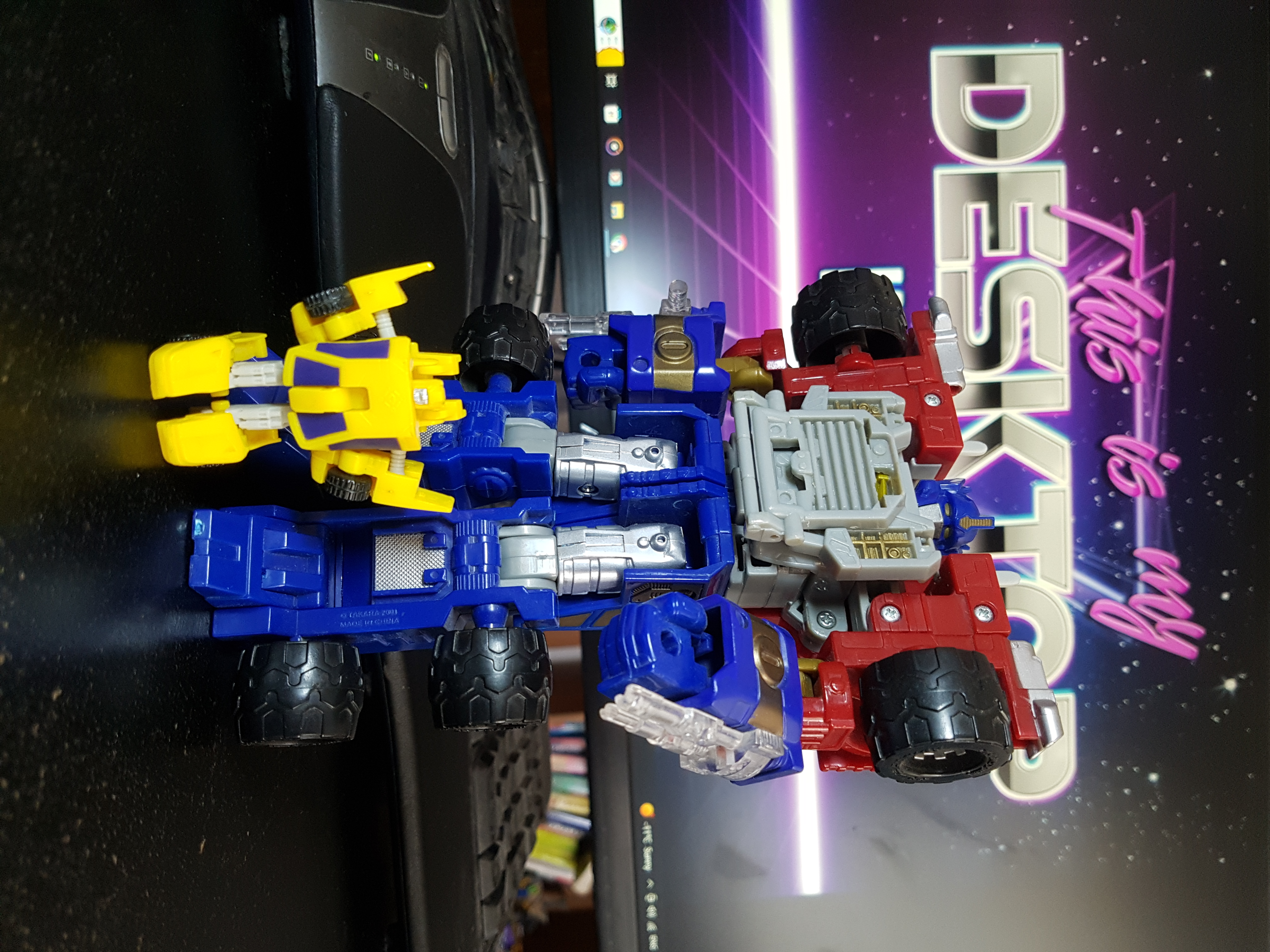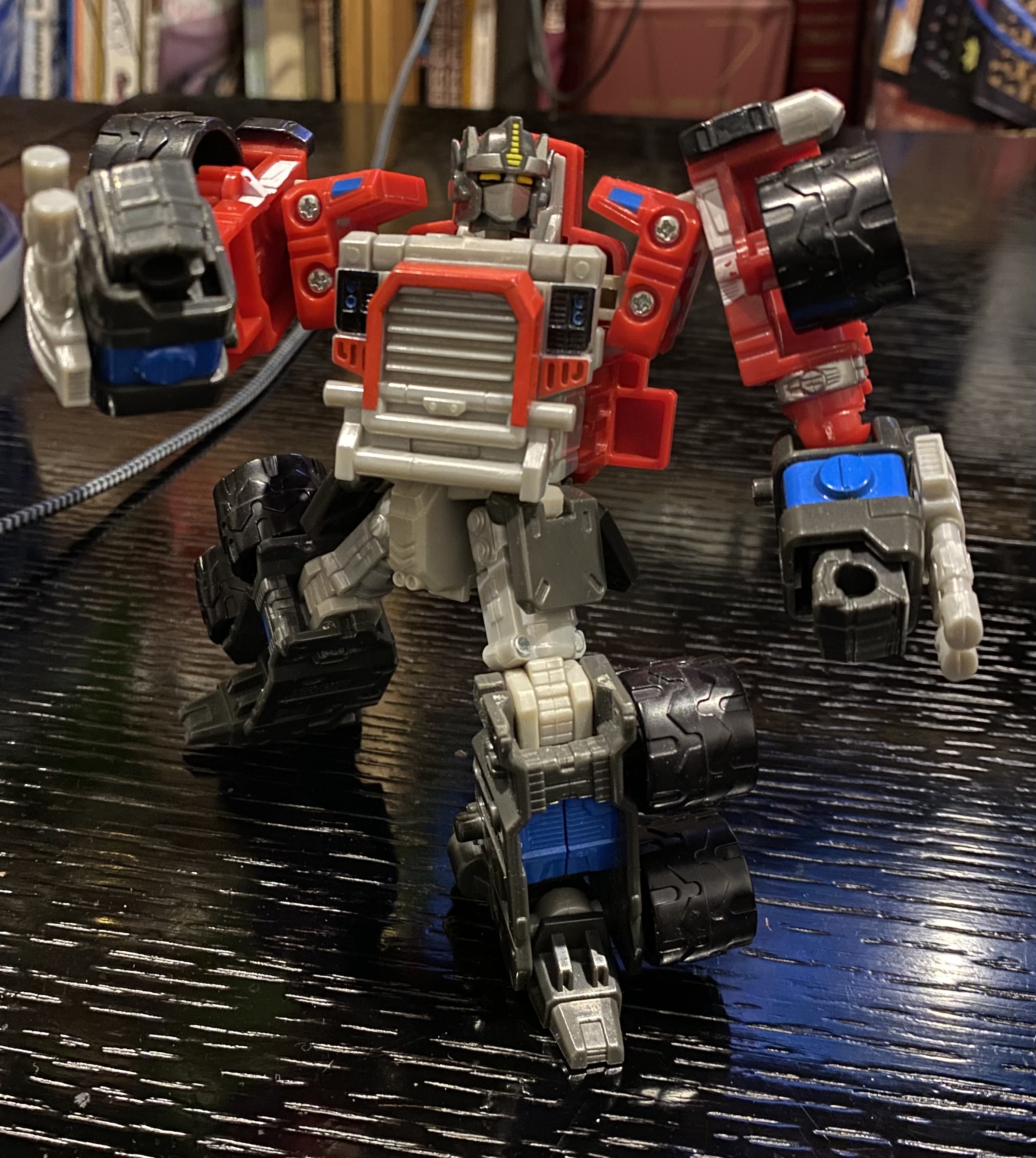 Powermaster Optimus Prime is really good. I mean, everyone knows this, but look at him! I've given him a team of other 80's and 90's bots with G2 Powermaster Ironhide, G2 Gobots Blowout and Double Clutch, and G1 Double Targetmaster Quickmix. They're a fun little team and visually they work really well together. The Super mode legs/trailer mode loading doors can even work as garages for Double Clutch and Blowout! I love it!