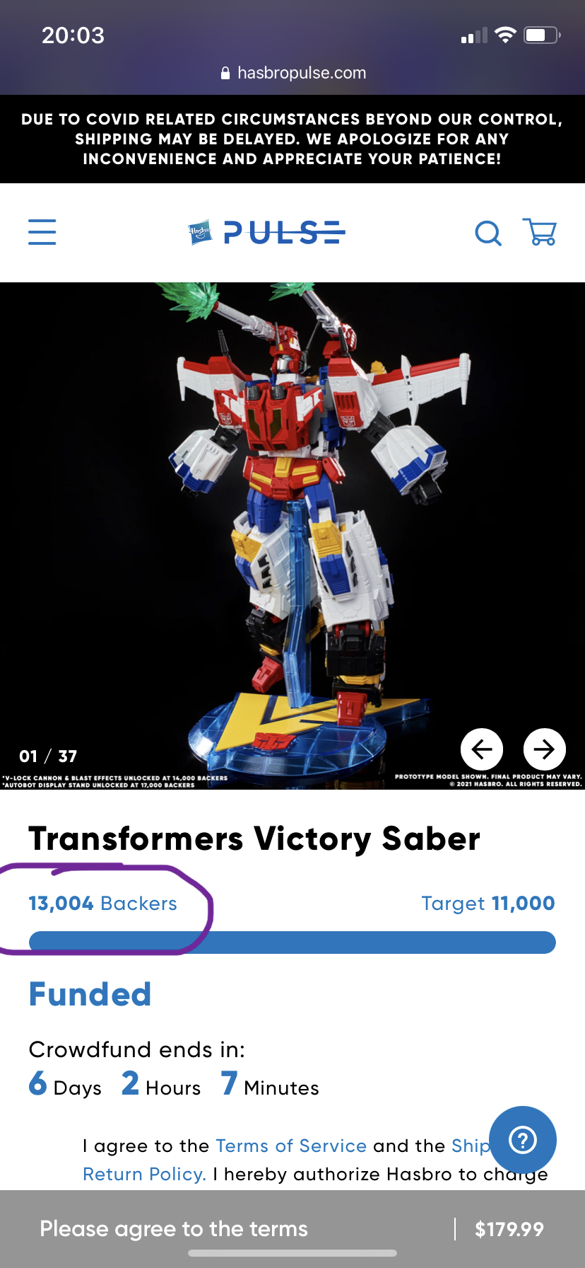 With 5 1/2 days left, we shall see what happens. Again, I'm not sure if any other Haslab that successfully funded hasn't achieved all it's stretch goals, but we shall see. I dont believe this myself, but I'm already seeing the conspiracy theorists online saying that Hasbro might lowball the actual orders so they don't have to make the stand or shield/micromasters.