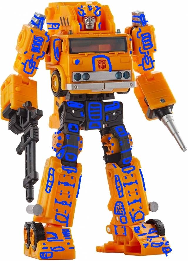 *Which this second statement doesn’t even make sense… Changing the look of a figure during the design process doesn’t mean starting over. Removing what would be molded detail isn’t exactly the same as re-engineering a figure’s transformation. In fact I’m betting removing visual detail is easier than adding it. It has to be. Because designing something requires thought, a plan, considering materials usage, how it works with the functions of moving parts, where joints/seams/pins are located, etc… Deleting/removing those visuals doesn’t involve almost any of that, and when it does, it would be to a much lesser degree.
